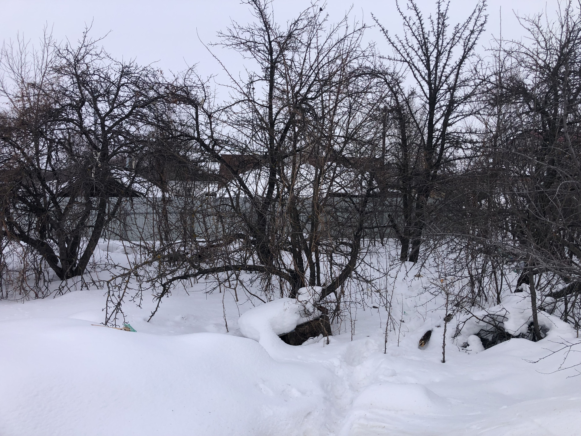 На участке кроме самого дома никаких построек нет, только огромная гора строительного мусора. Земля много лет находится в необработанном состоянии.
