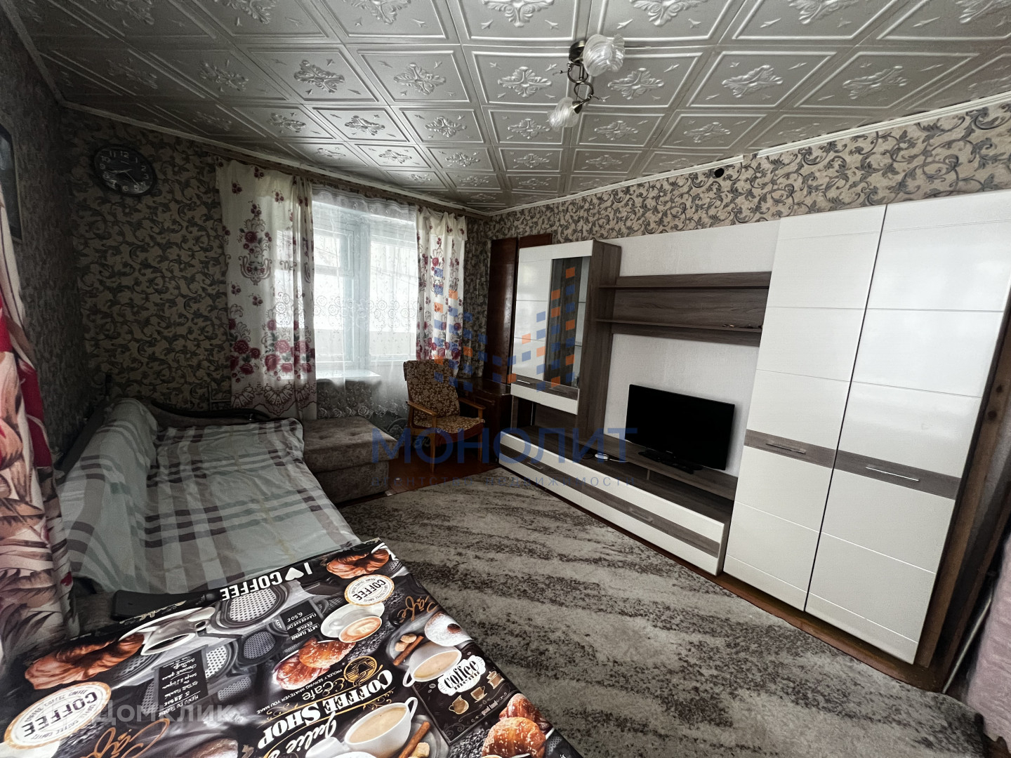Жилая площадь 24 кв.м ( зал 15 кв.м., комната 9 кв.м.). Туалет и ванна раздельны.