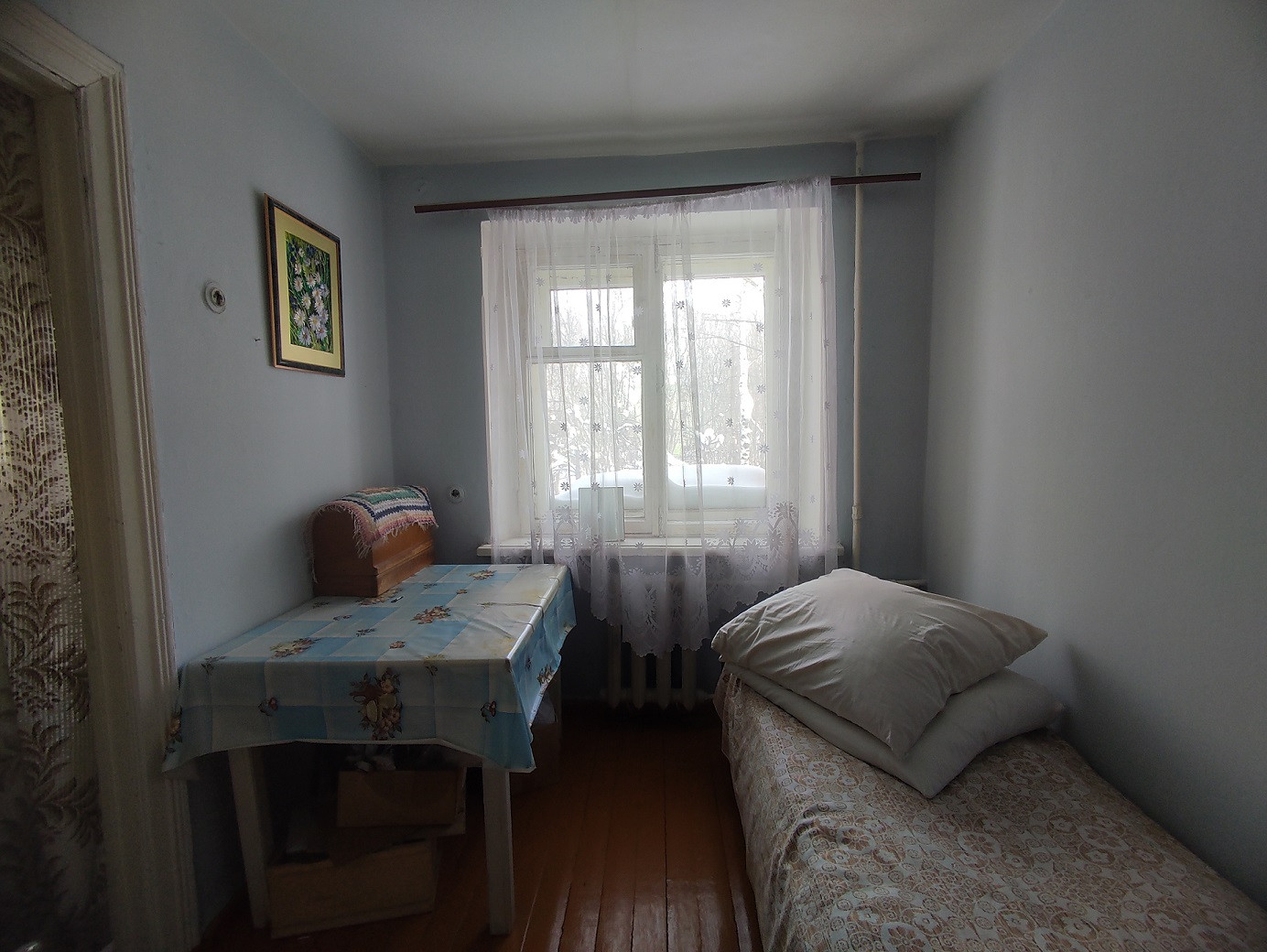 Продаётся двухкомнатная квартира старой планировки. Состояние квартиры среднее: хорошие крепкие полы (нигде не скрипят), ванная и туалет совмещенные, требует ремонта, окна родные. Балкон из зала застеклен. Площадь хорошая: без учета балкона 45,8 кв.м., кухня 6 кв.м., комната 10,2 кв.м. и зал  19,8 кв.м., кладовка - 2,5 кв.м., прихожая -4,5 кв.м.