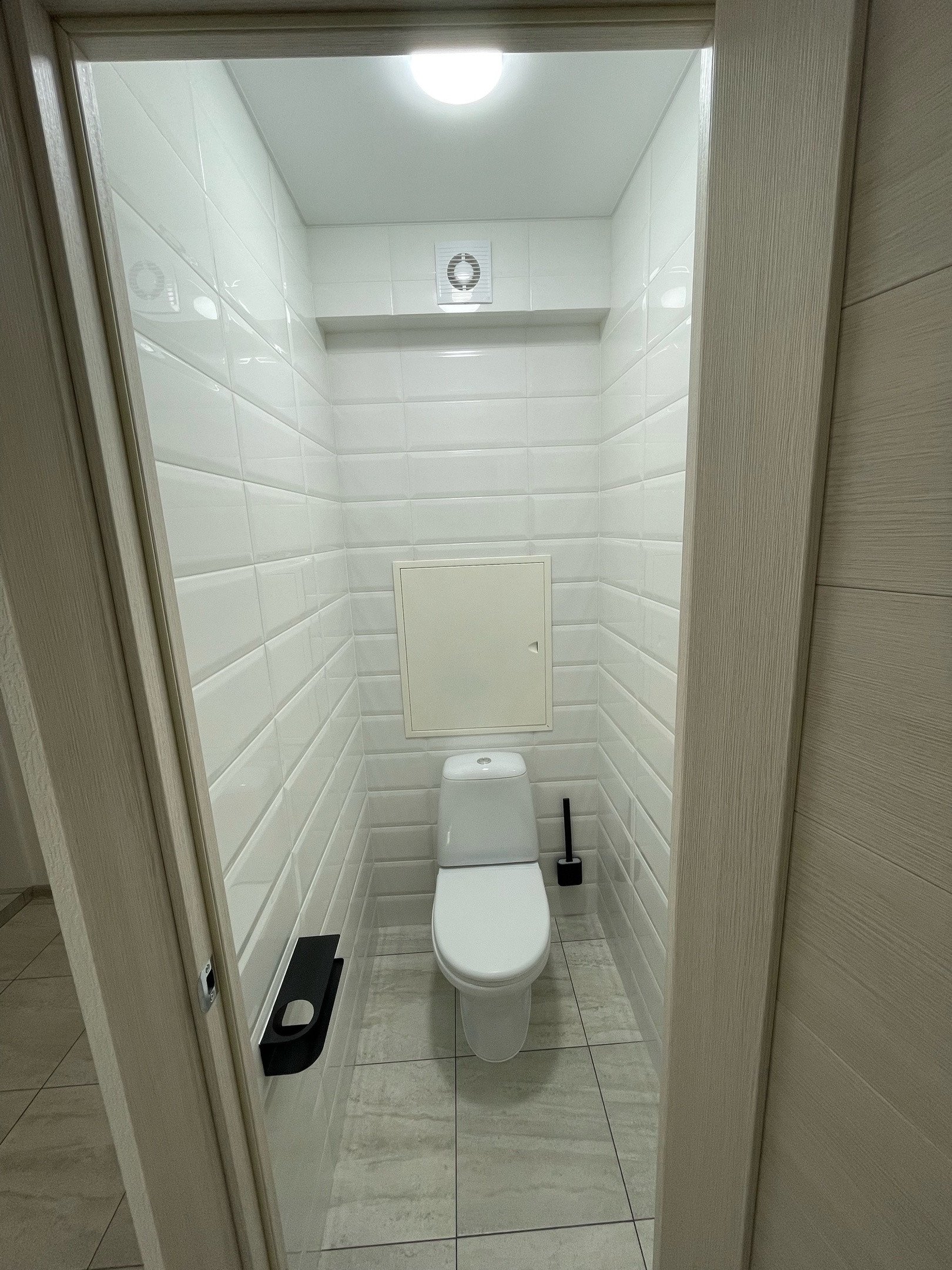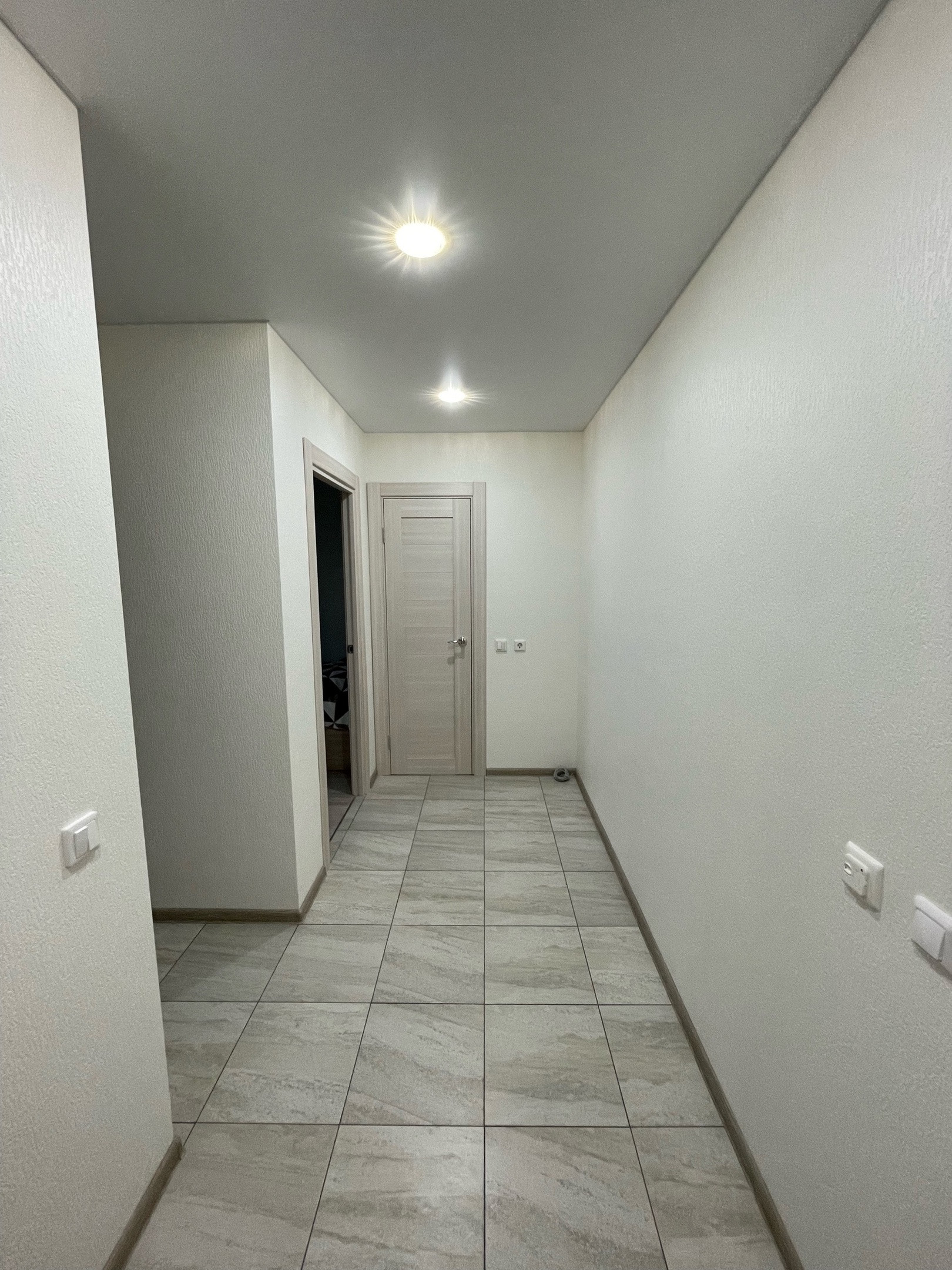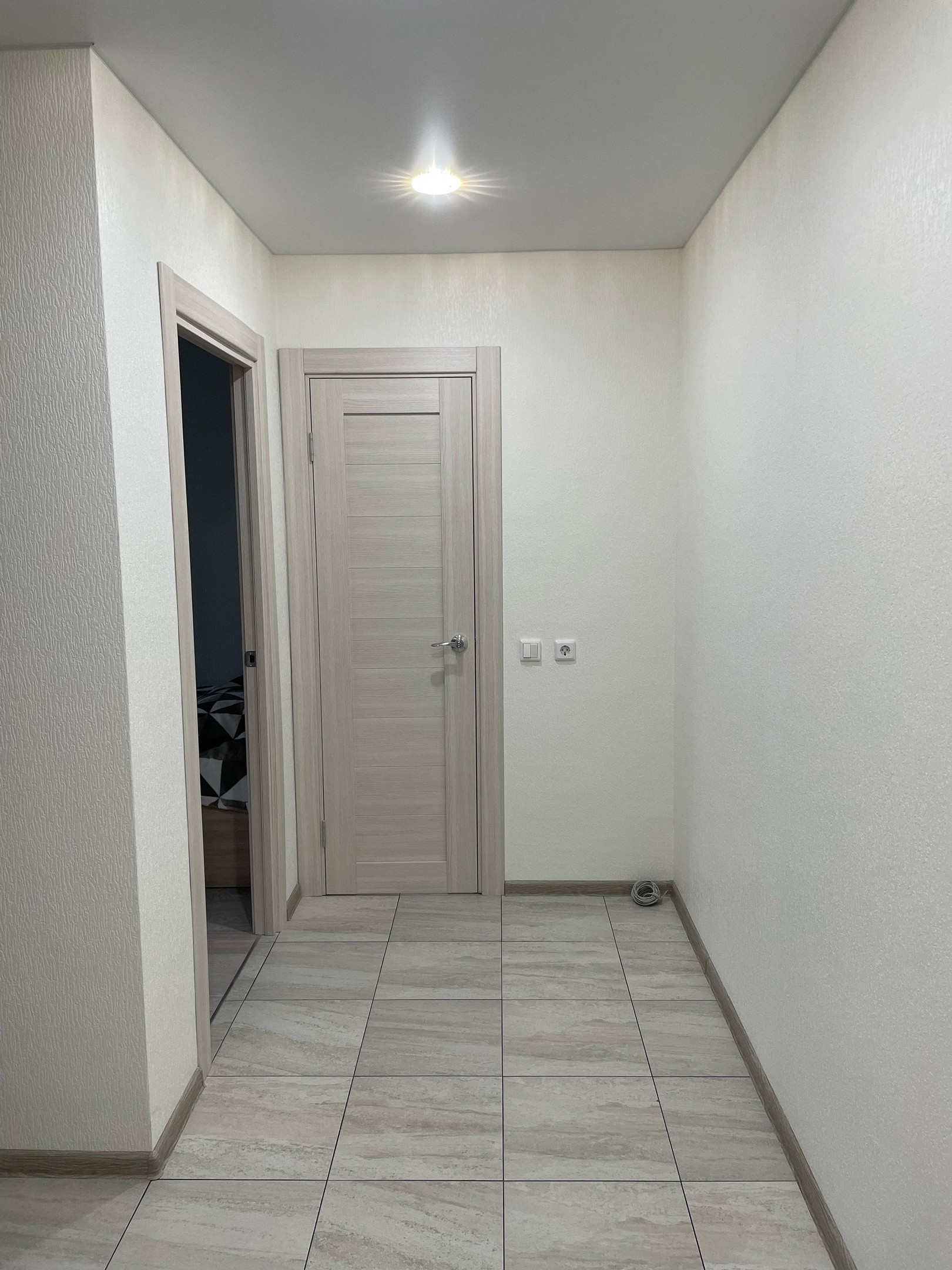 Теплый пол при входе (электрический), в санузле и ванной вытяжка с кнопки, обои под покраску в зале и в коридоре