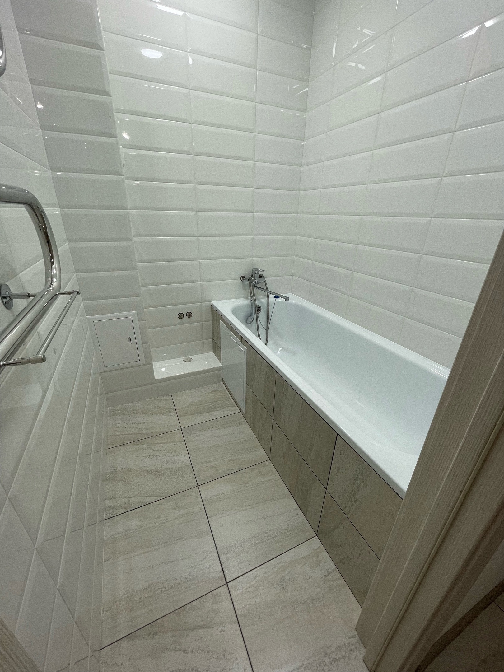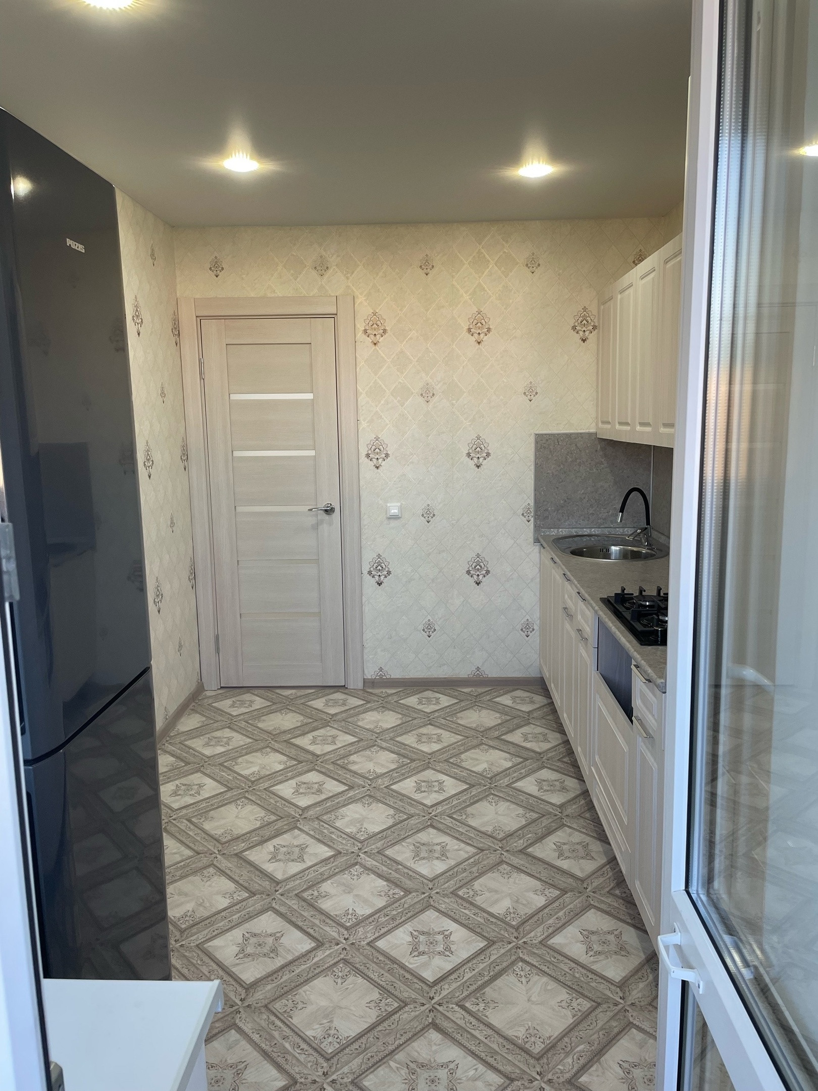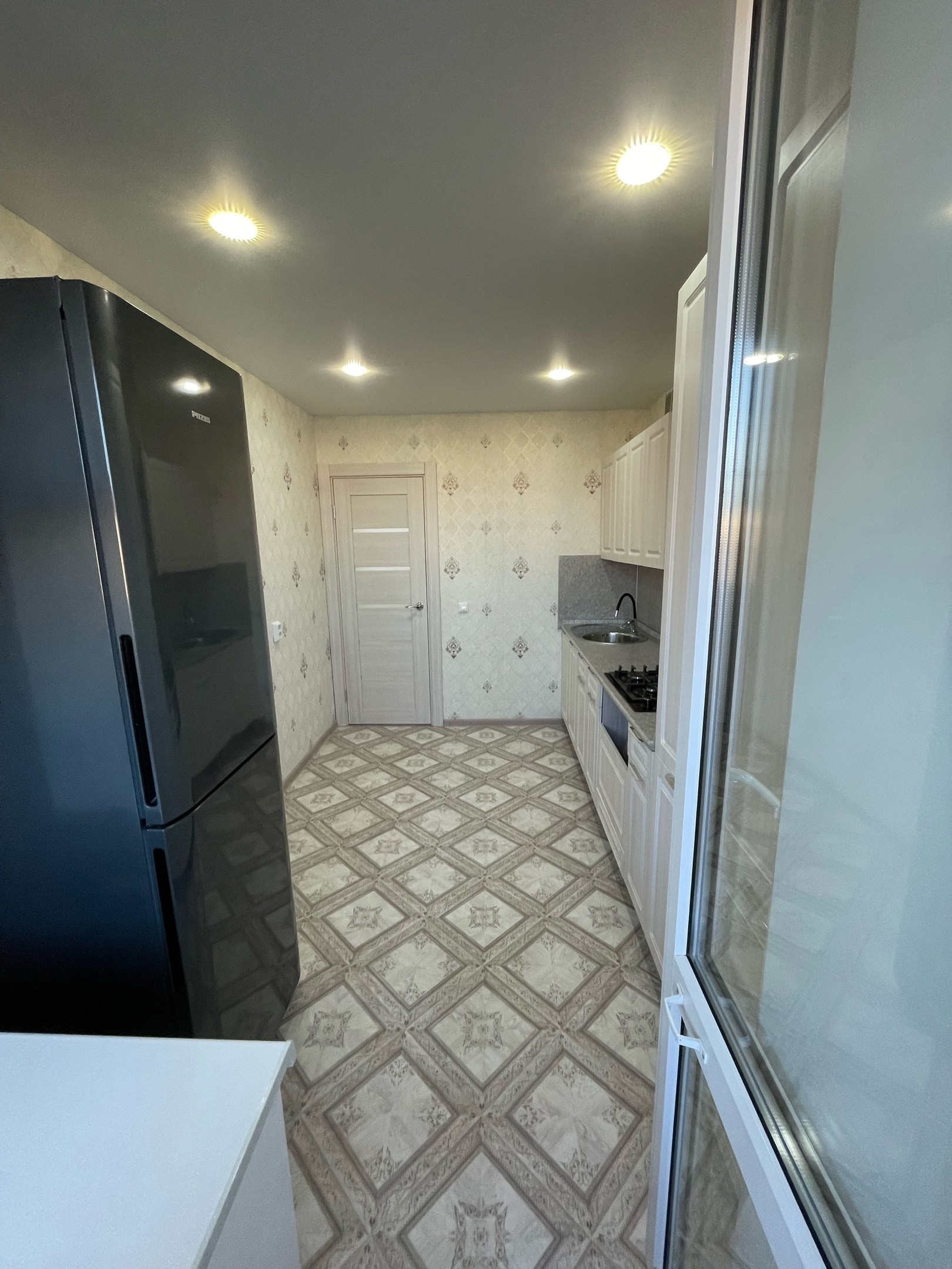 Теплый пол при входе (электрический), в санузле и ванной вытяжка с кнопки, обои под покраску в зале и в коридоре