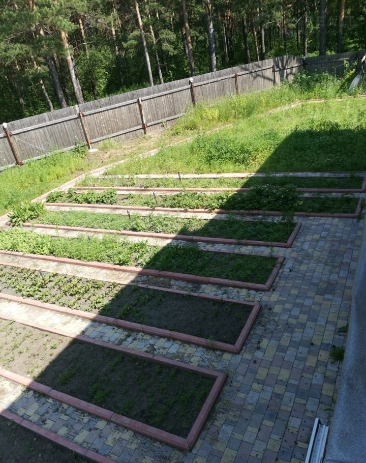 Имеется 7 оформленных грядок(1 из них клубника) и теплица на фундаменте 6 на 3. Закопана емкость для полива грядок, автоматический полив территории. Посажен газон (нужен уход). Посажены премиальные сорта малины, вишни, смородины, кислицы, крыжовника. Половина территория уложена в брусчатку, вторая половина территории с соснами и травкой.