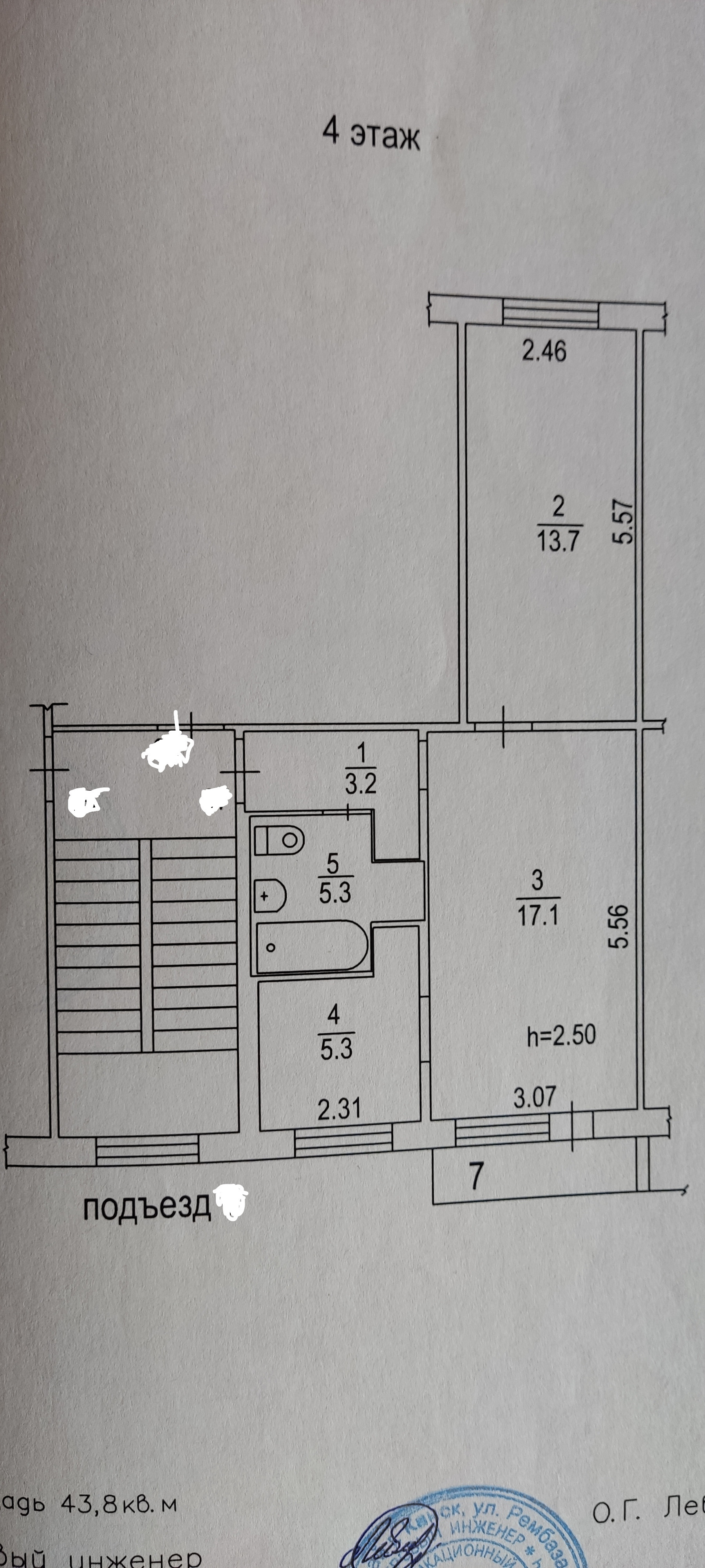 Высота потолков 2.5 м