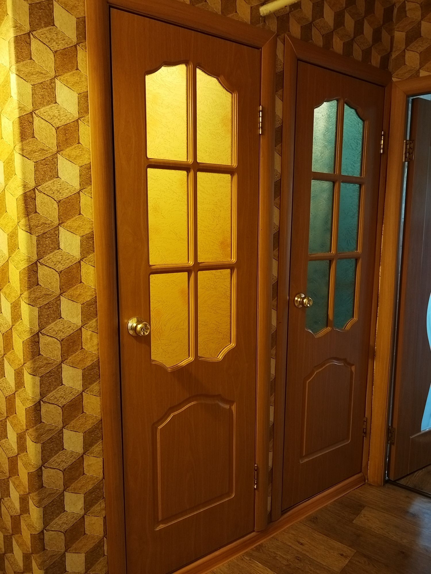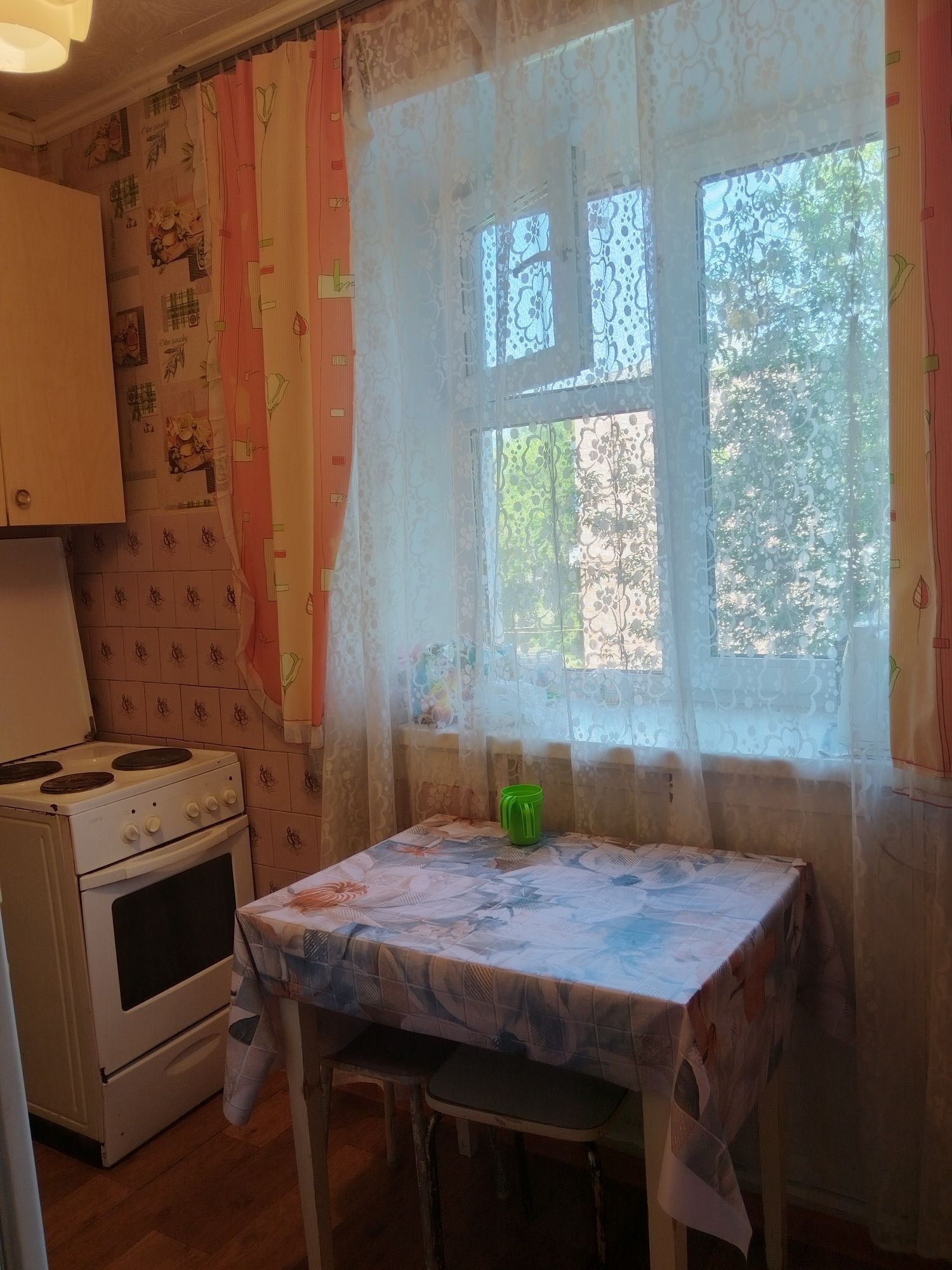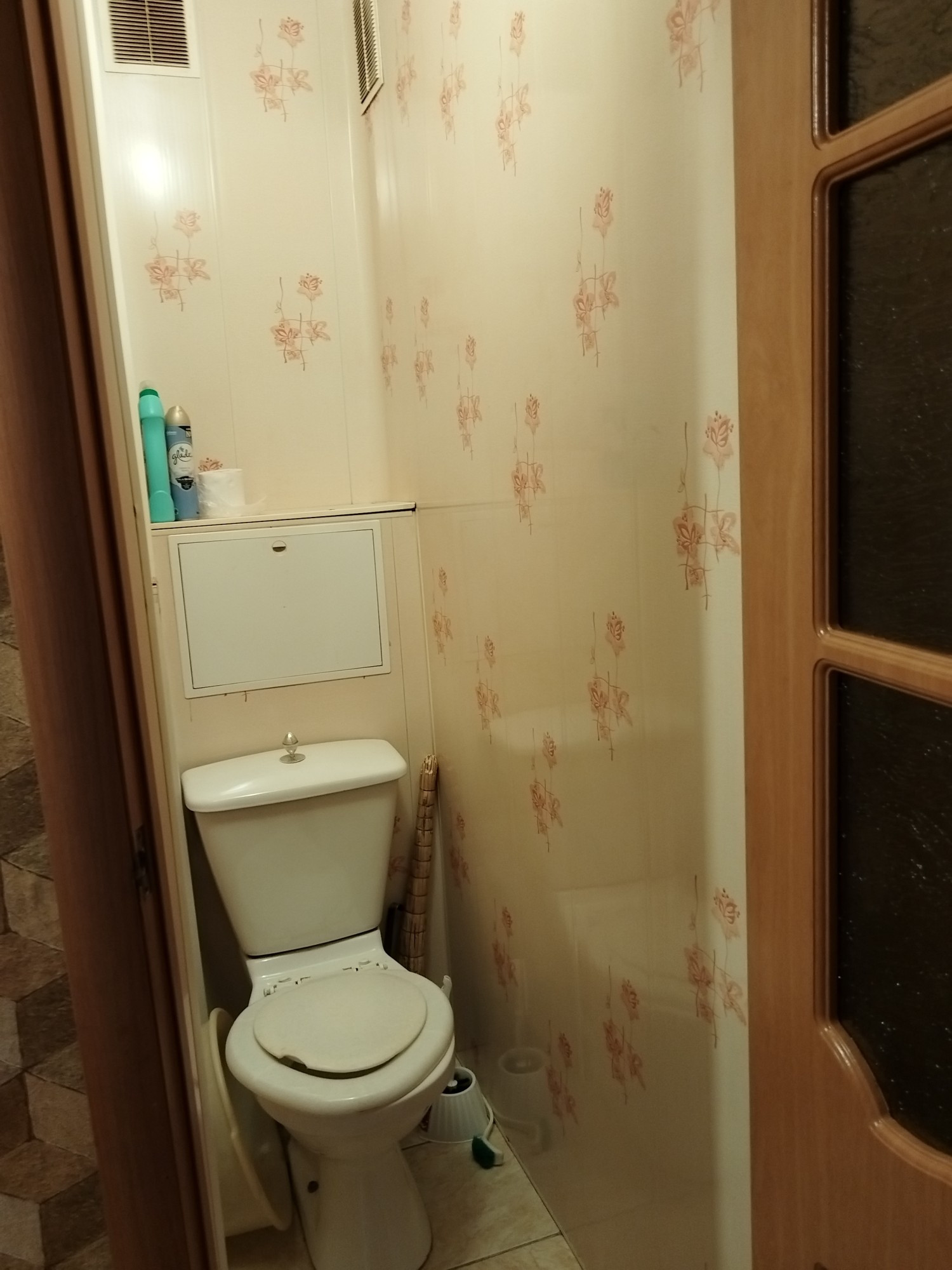В квартире все окна пластиковые, хорошие. Застеклен балкон . В туалете стеновые панели пвх, в ванной кафель. Электро плита . Входная дверь одна железная ,одна новая деревянная .
