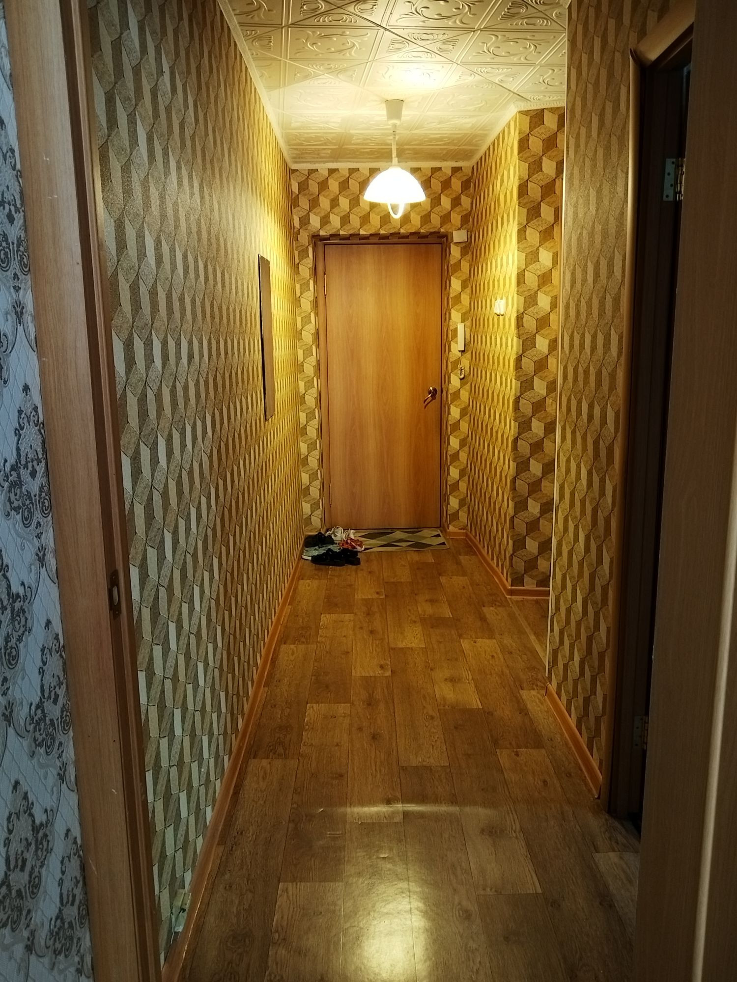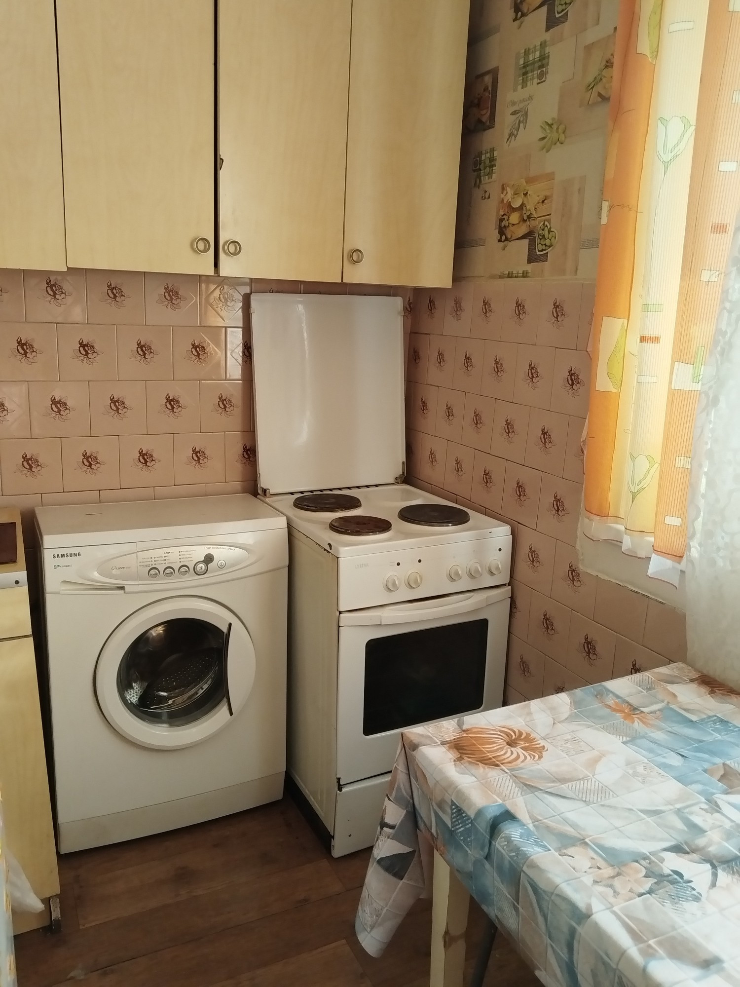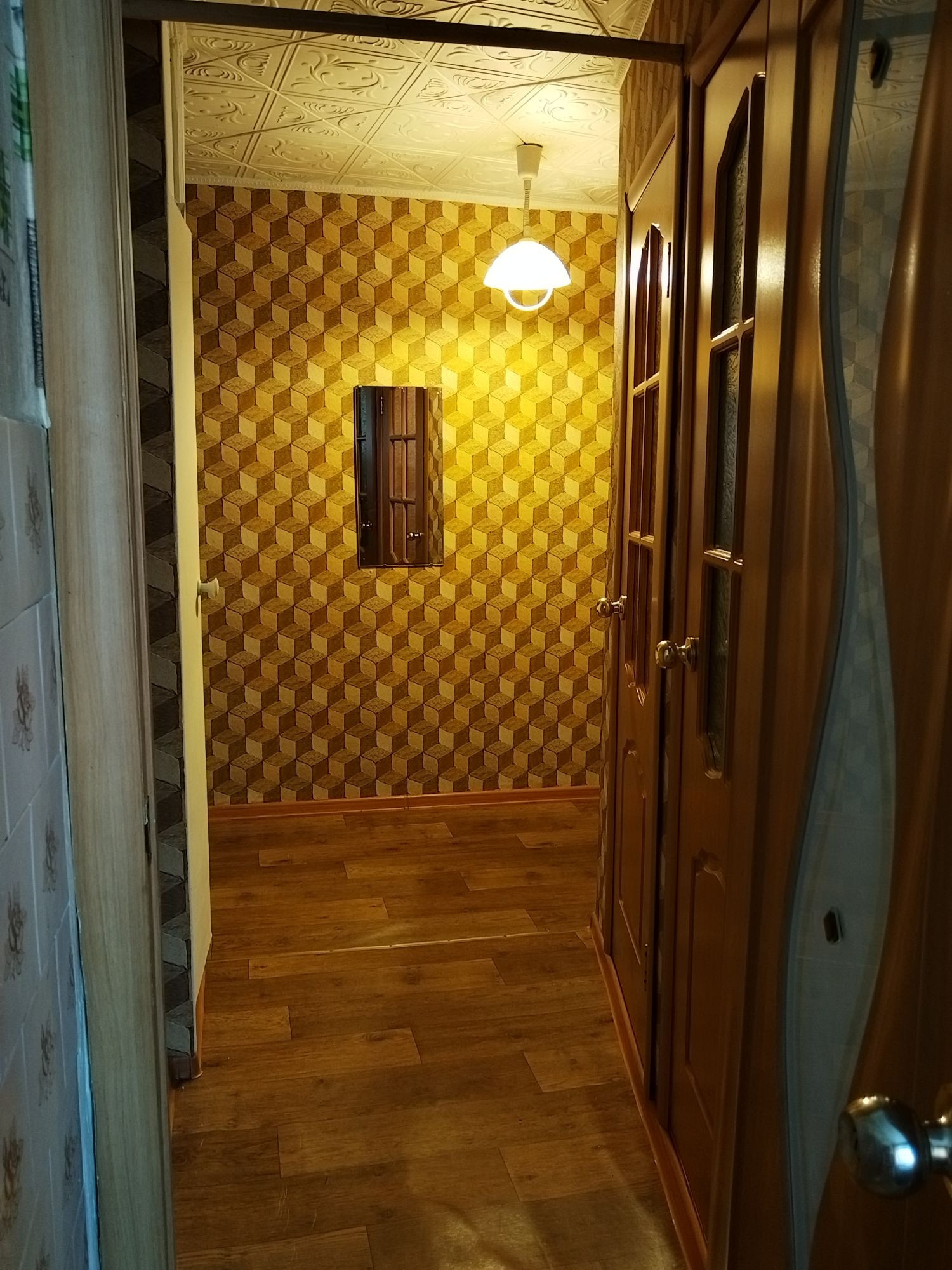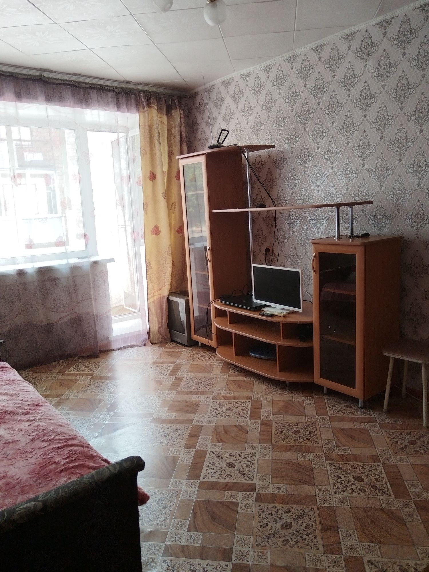 В квартире все окна пластиковые, хорошие. Застеклен балкон . В туалете стеновые панели пвх, в ванной кафель. Электро плита . Входная дверь одна железная ,одна новая деревянная .