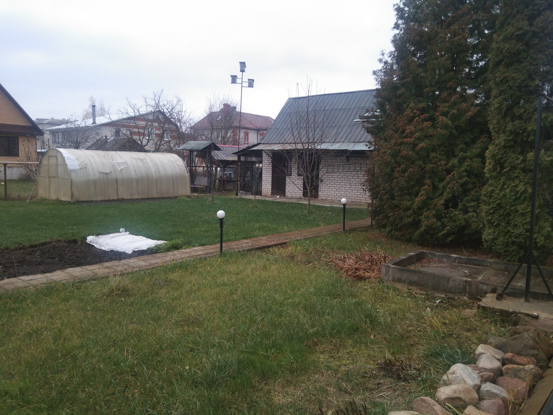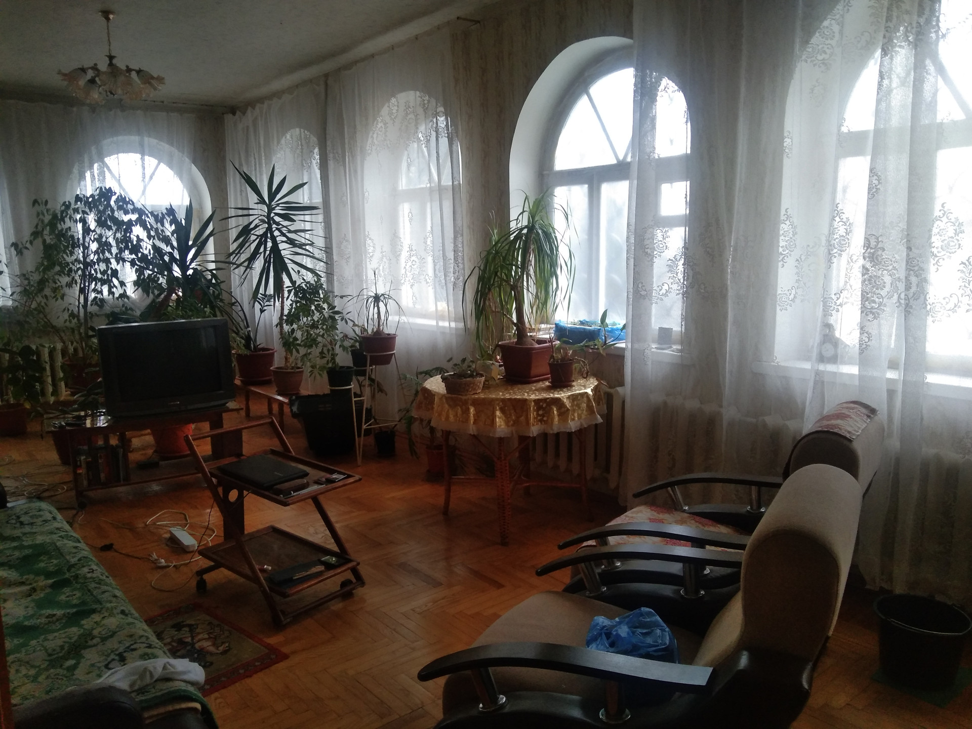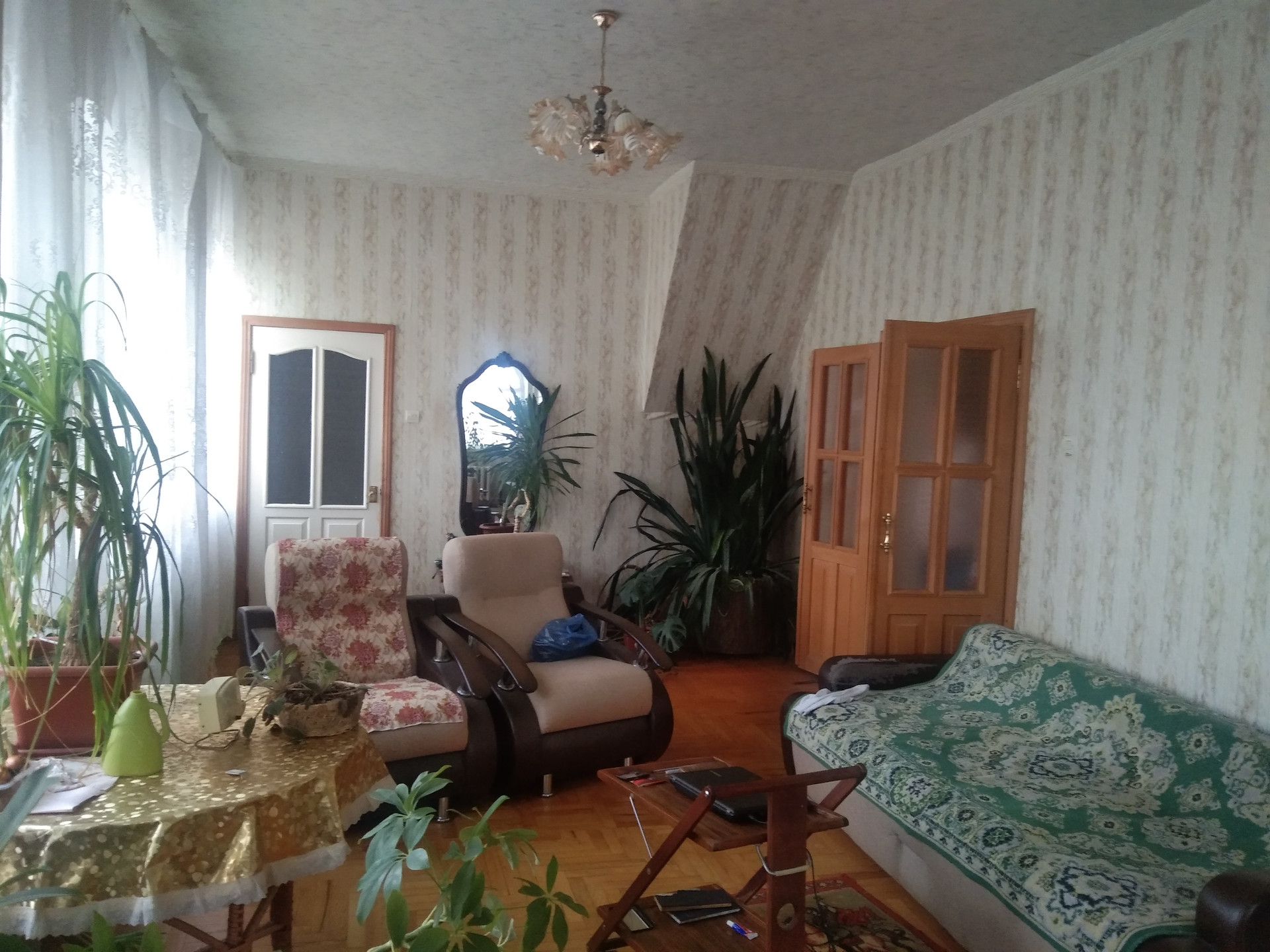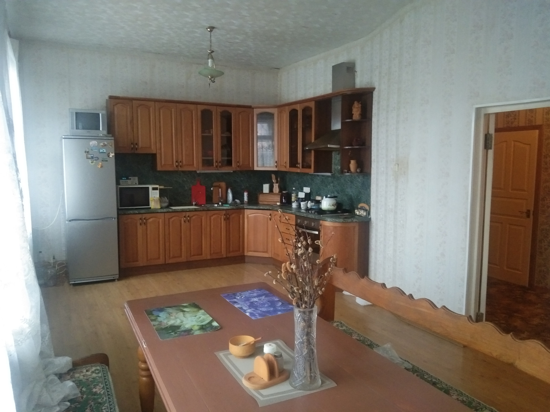 1115. Дом трехэтажный стены  силикатный кирпич в трех уровня перекрыт ж.б. плитами . Под  домом цокольный этаж , встроенный гараж . Имеет два отдельных въезда с площадками и входами на первый и второй этажи .На каждом этаже кухня ,ванна , туалет ,зал , спальни.На первом этаже зал 42 кв .м.,на втором цветочная оранжерея 36 кв м с высотой потолка 320см. Натуральный паркет  дуб ясень ,около 50% площади , в спальнях полы  покрытые ковролином (босой ногой не холодно )Отопление газовое , вода сетевая (но есть и скважина ) канализация городская , электричество 380 в. , два газовых котла работает всегда один.горячая вода -колонка.Меж этажная лестница из дуба   Есть русская баня с бассейном , хозблок , барбекю , качели , теплица , садовый участок обработан с плодовыми насаждениями засеян травой .Подъезд и дорожки уложены плиткой  Дом в городской черте в 300 метрах от центра подъезд круглогодичный , место тихое .