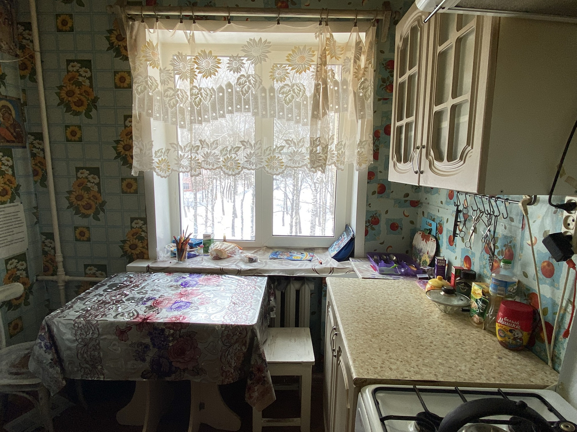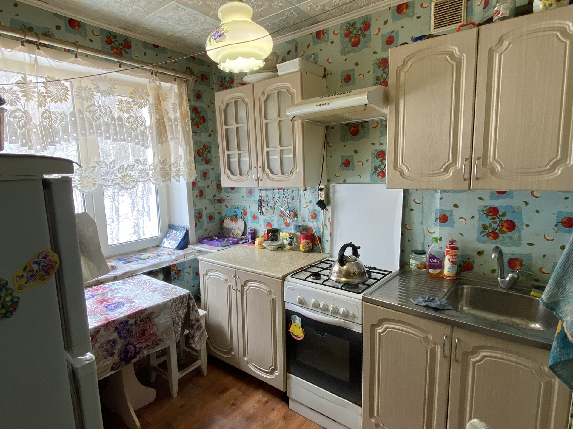 Сан узел совмещен, новая сантехника и трубы, установлен современный водонагреватель, счётчик на воду. При продаже остаётся кухонный гарнитур и техника. Окна выходят во двор. Рядом вся необходимая инфраструктура.