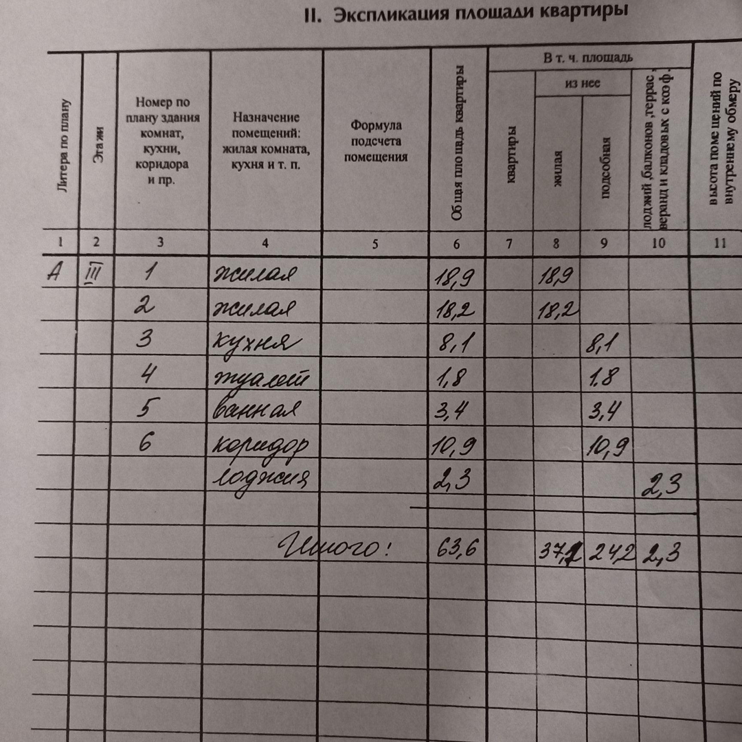 Общая площадь 63.6 м2