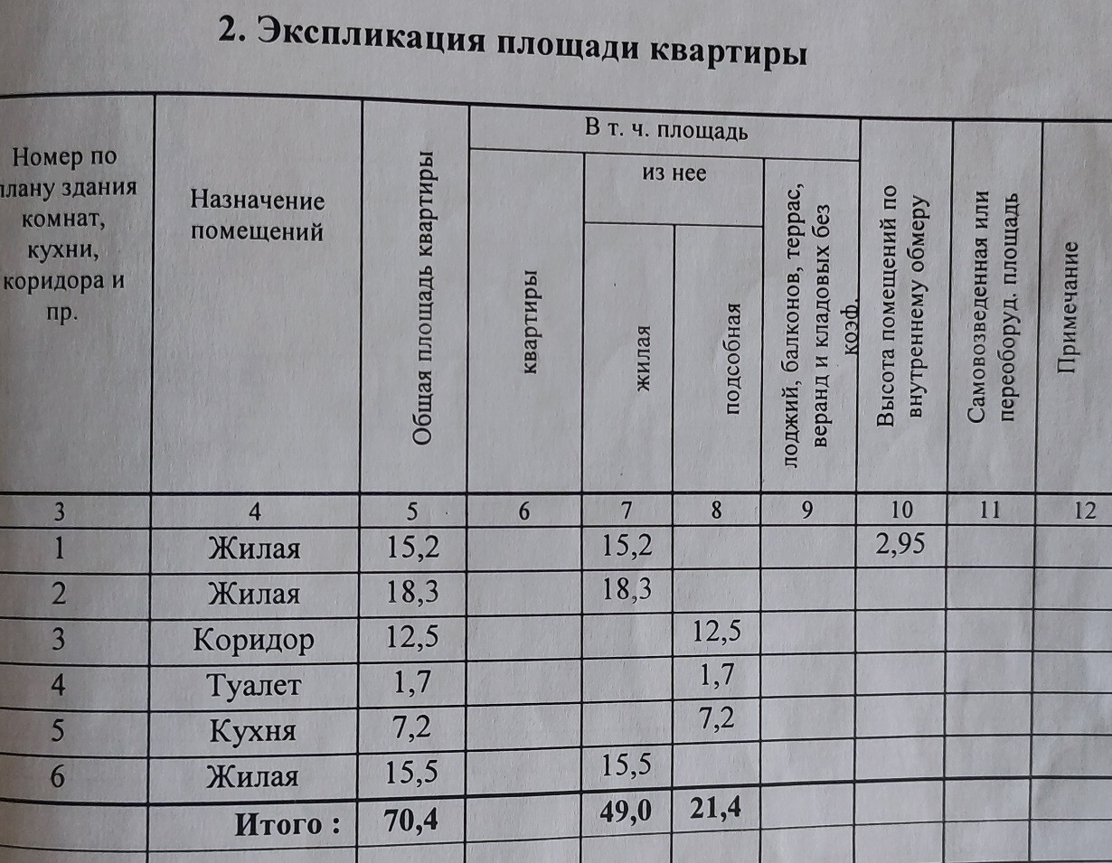 Общая площадь 70.4 м2
