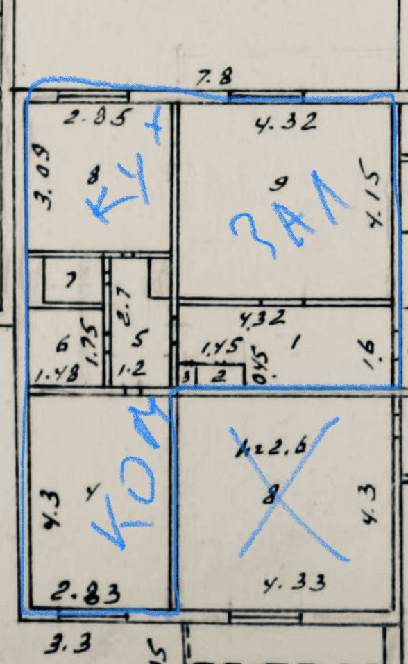 Площадь кухни 9 м2