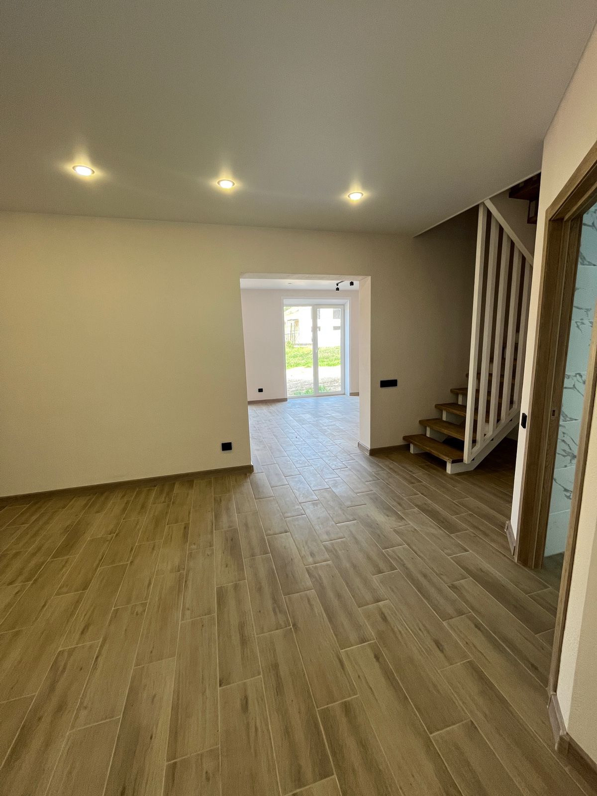 На первом этаже: просторная кухня, гостиная с выходом на улицу, гостевая спальня, санузел с душевой кабиной и вместительная гардеробная у входа.