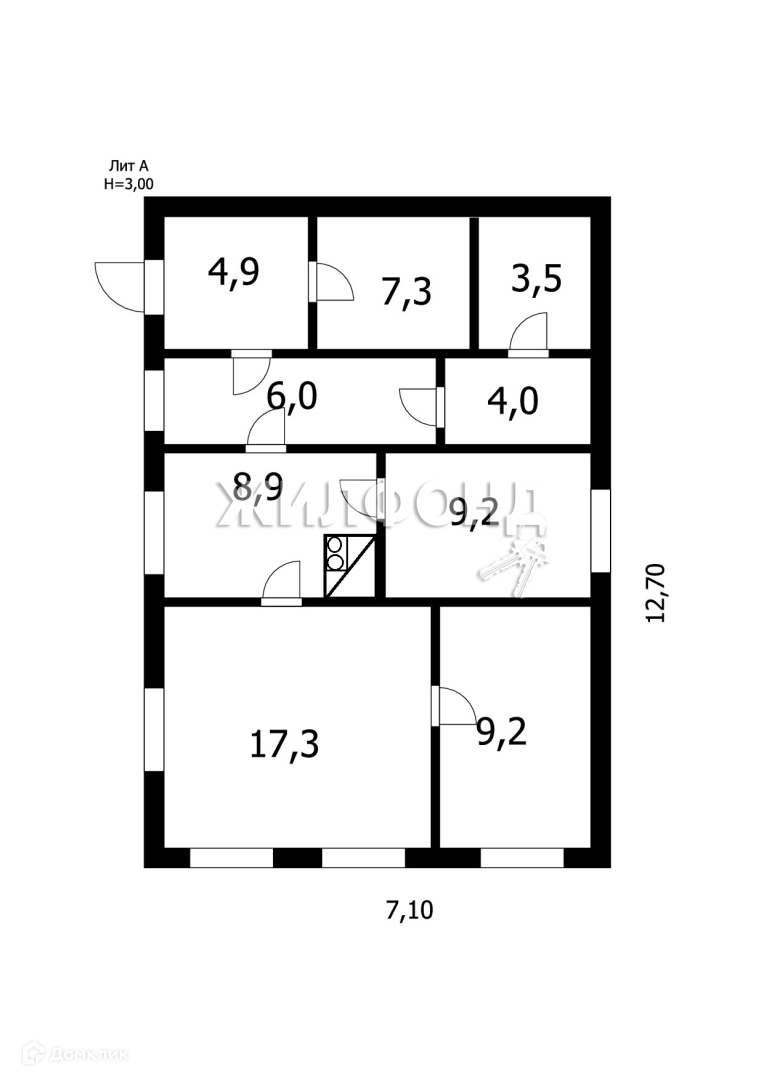 Общая площадь 70.3 м2