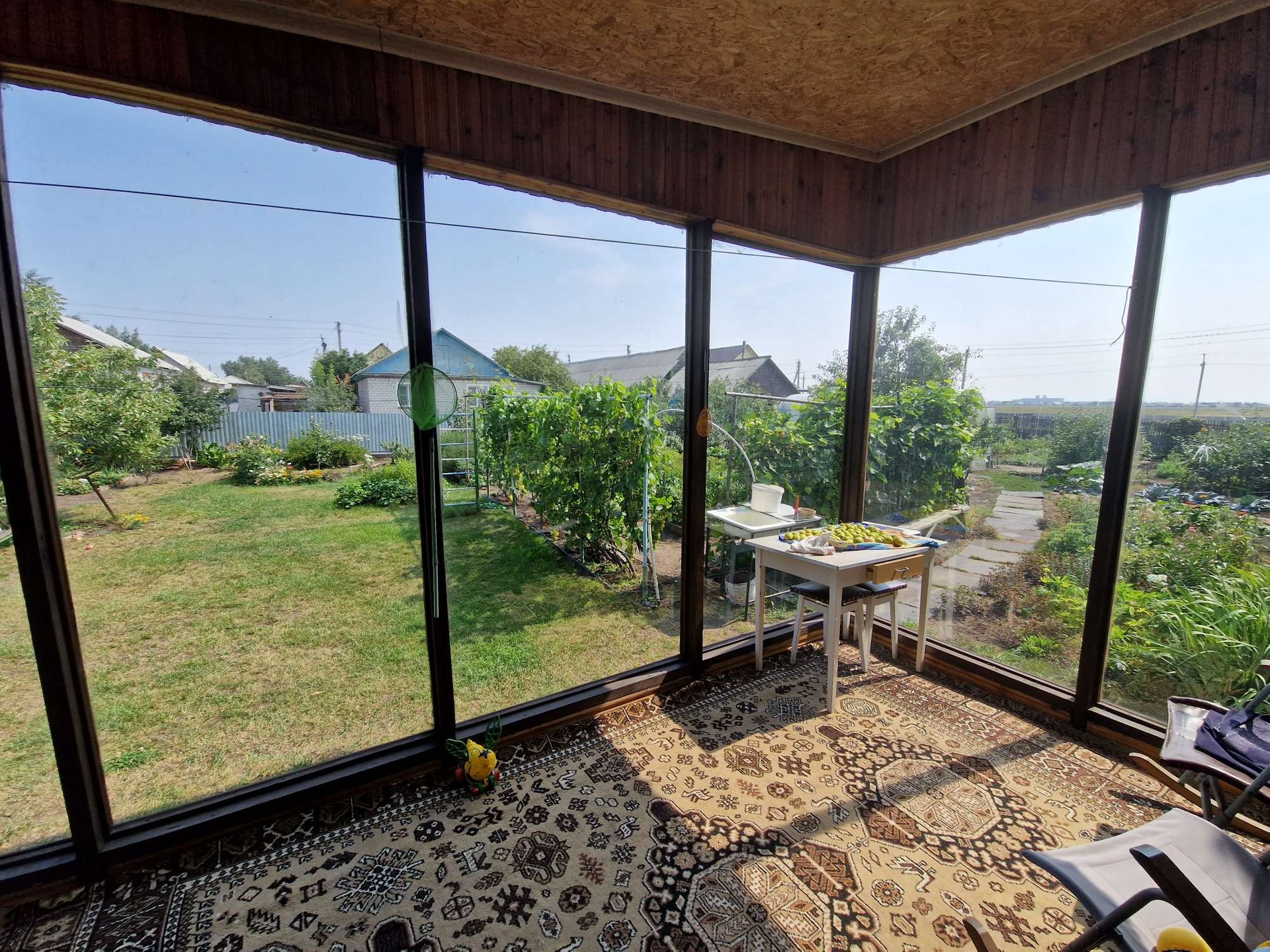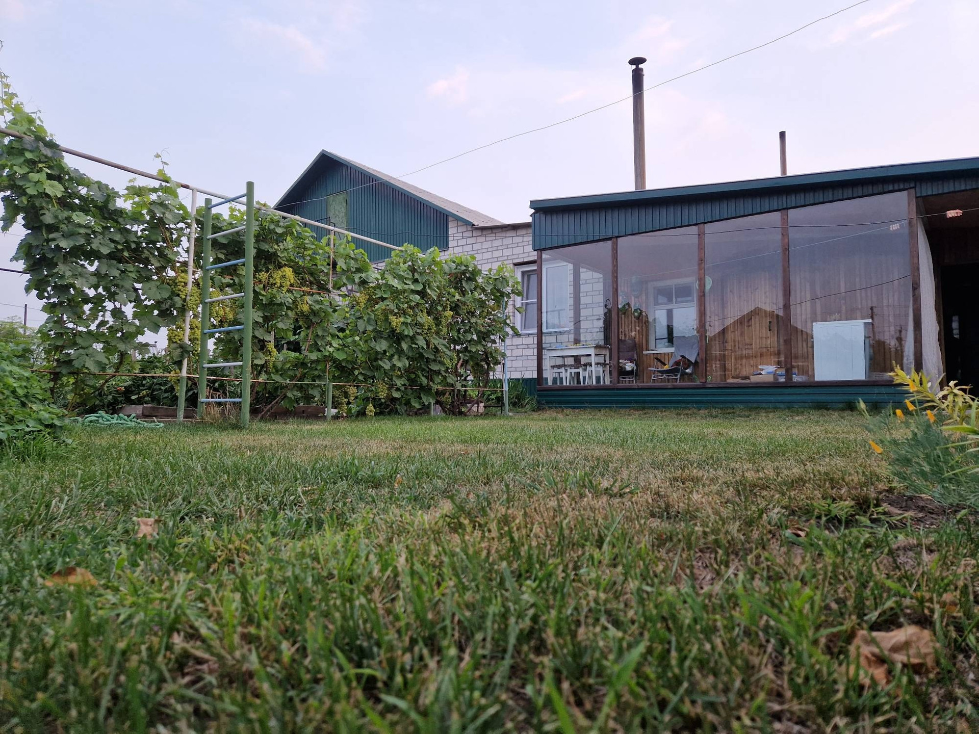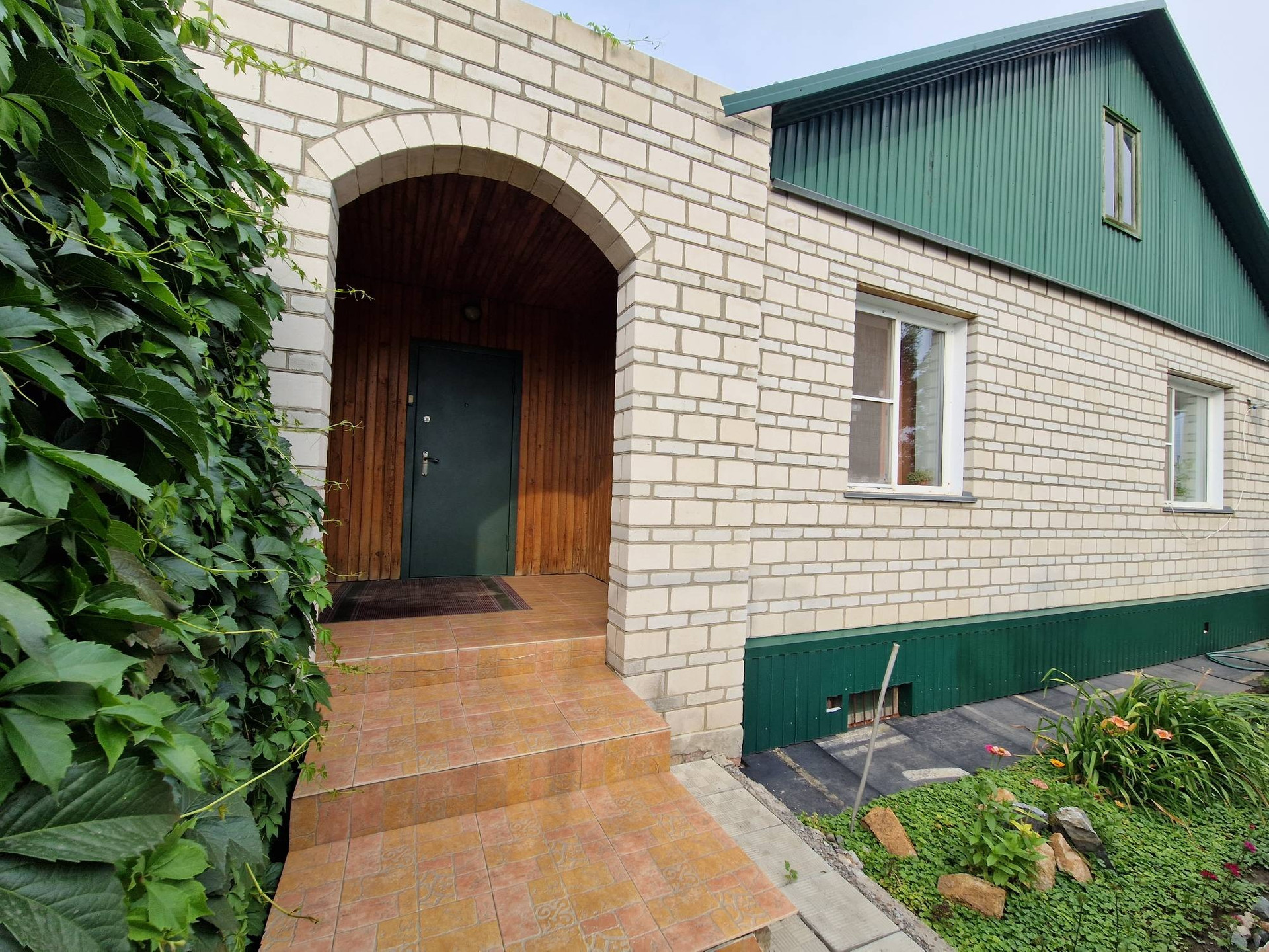 Продам дом. В отличном состоянии. В доме гостинная (27.7кв.м.), холл (19.8кв.м.), 2 спальни (11.5 и 15.5кв.м.), кухня-столовая (14.8кв.м.), прихожая (18кв.м.). Сделан евроремонт. Деревянные межкомнатные двери, пластиковые окна. В доме с/у, ванна, баня, два бойлера.  Отопление печное и электрокотел. Дом теплый и светлый. Имеется подвальное помещение, где находится овощехранилище и мастерская. Все постройки под одной крышей. Имеется большой внутренний двор (газон), большая остекленная терраса. Гараж со смотровой ямой. Есть небольшой хозяйственный двор с дровником и угляркой. На участке есть теплица, плодово-ягодные деревья и кустарники (яблони, груши, сливы, виноград черный и зеленый, вишня, смородина, малина и др.).