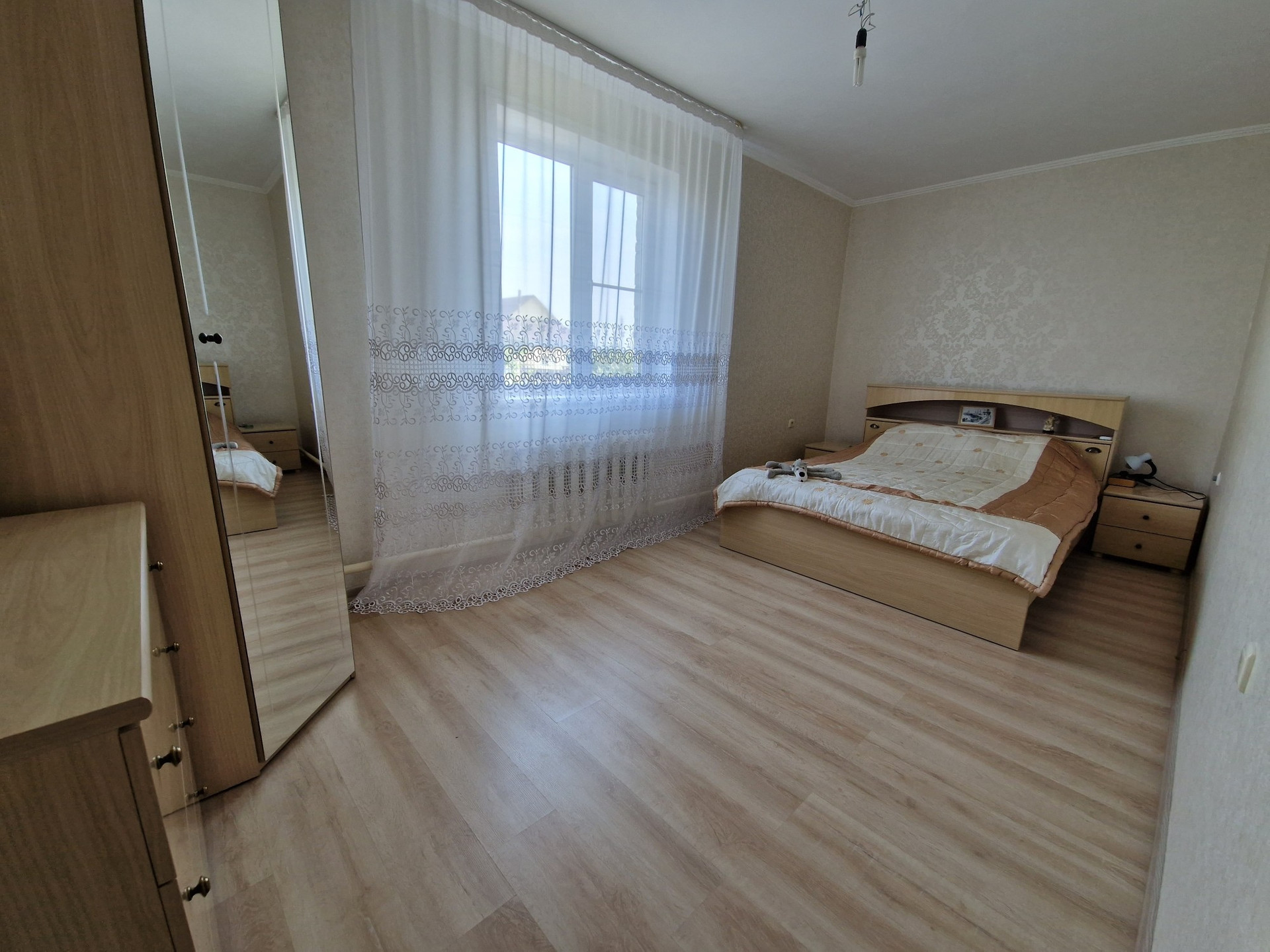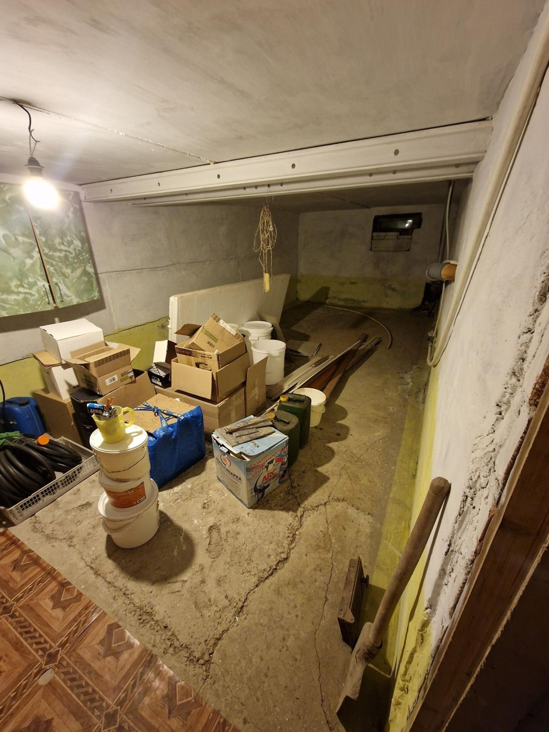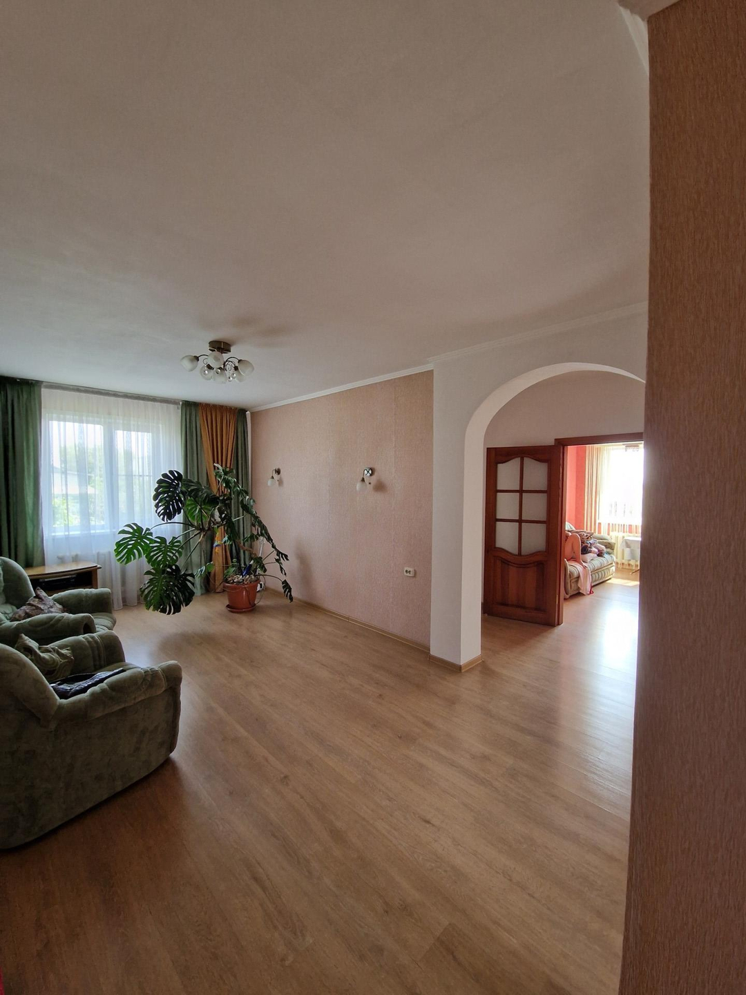 Продам дом. В отличном состоянии. В доме гостинная (27.7кв.м.), холл (19.8кв.м.), 2 спальни (11.5 и 15.5кв.м.), кухня-столовая (14.8кв.м.), прихожая (18кв.м.). Сделан евроремонт. Деревянные межкомнатные двери, пластиковые окна. В доме с/у, ванна, баня, два бойлера.  Отопление печное и электрокотел. Дом теплый и светлый. Имеется подвальное помещение, где находится овощехранилище и мастерская. Все постройки под одной крышей. Имеется большой внутренний двор (газон), большая остекленная терраса. Гараж со смотровой ямой. Есть небольшой хозяйственный двор с дровником и угляркой. На участке есть теплица, плодово-ягодные деревья и кустарники (яблони, груши, сливы, виноград черный и зеленый, вишня, смородина, малина и др.).