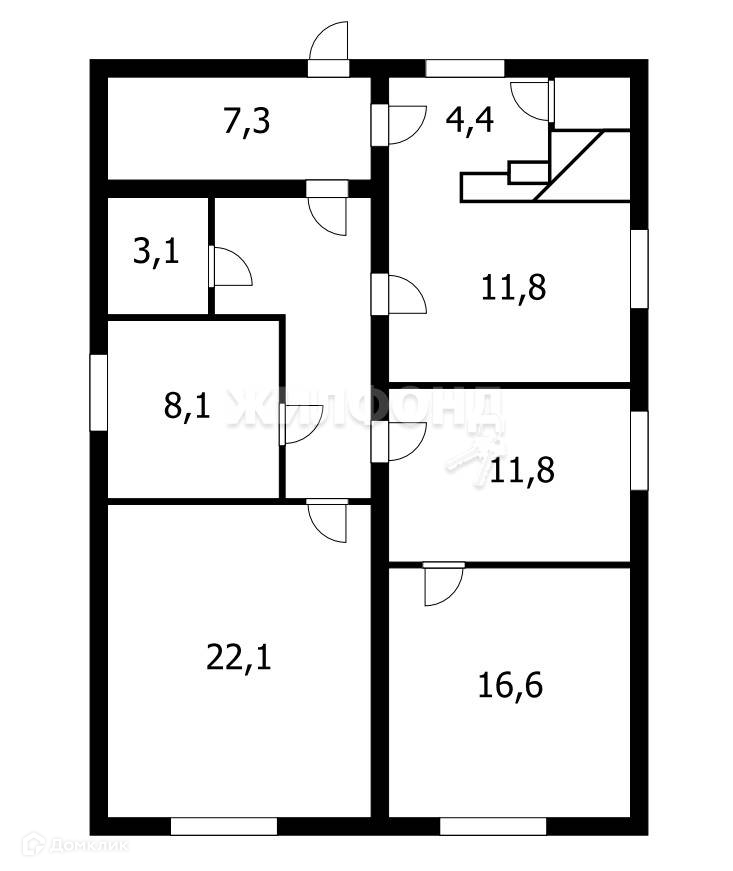 Жилая площадь 58.6 м2