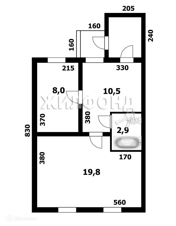 Жилая площадь 27.8 м2