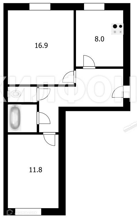 Жилая площадь 28.7 м2
