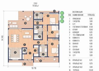 Общая площадь: 117.7 м2