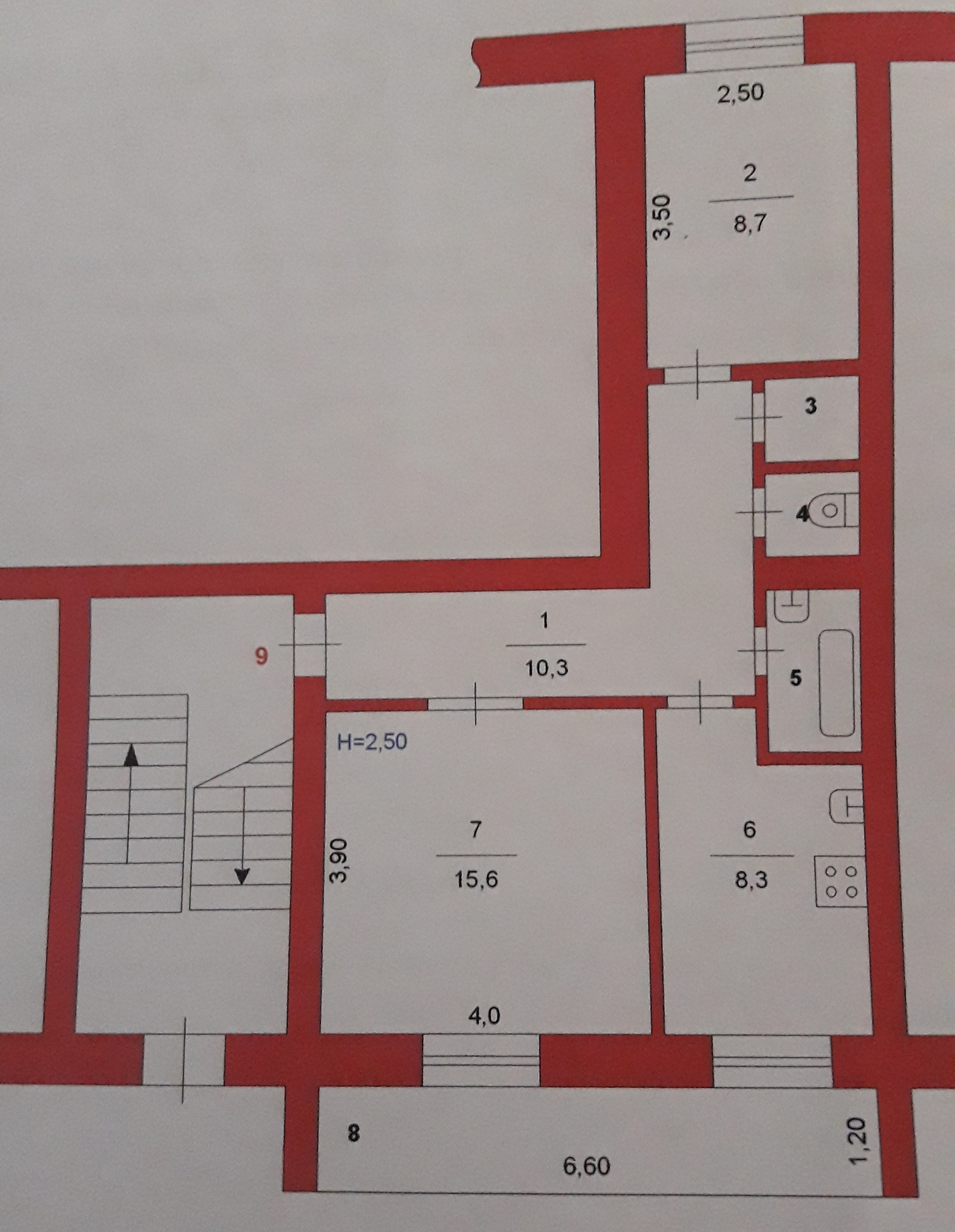 Высота потолков 2.5 м