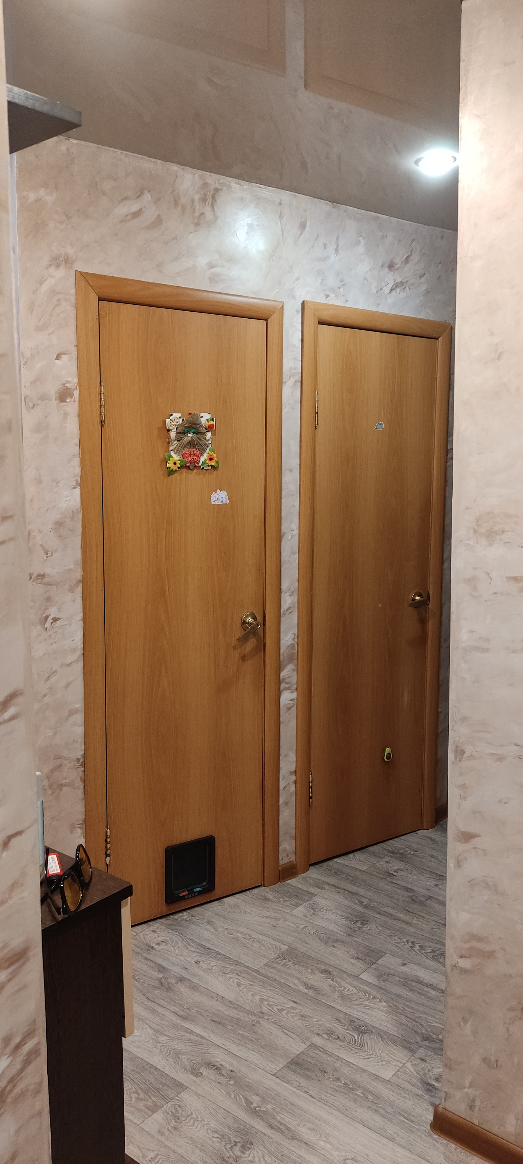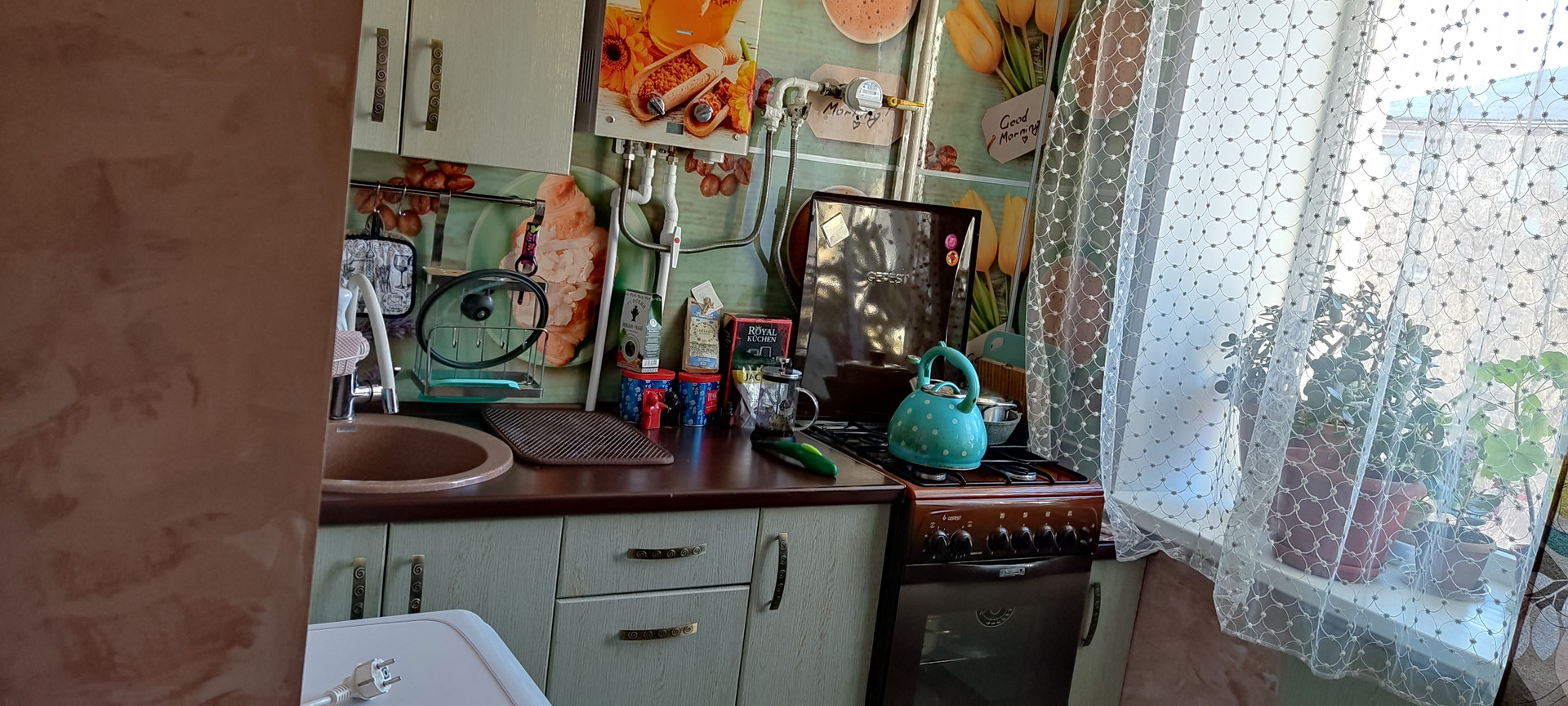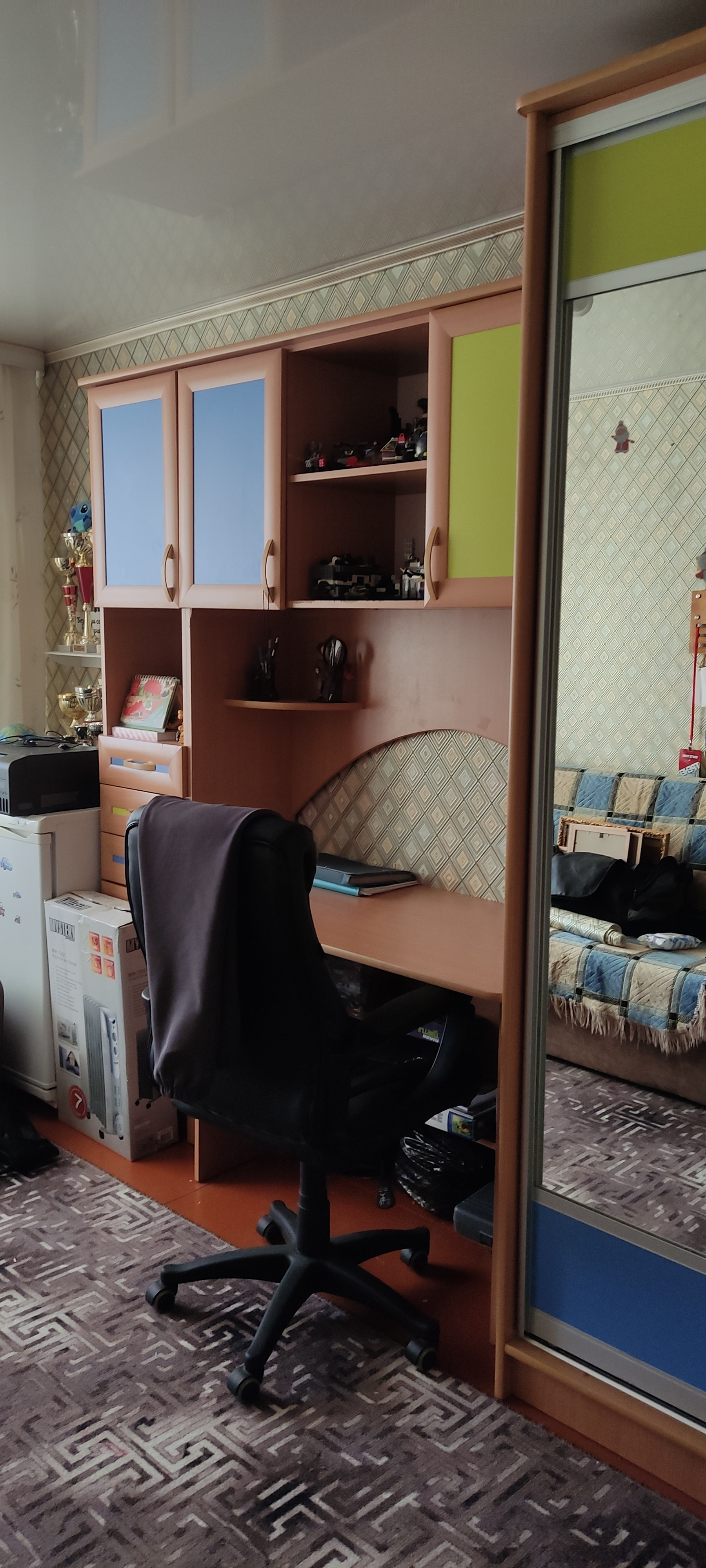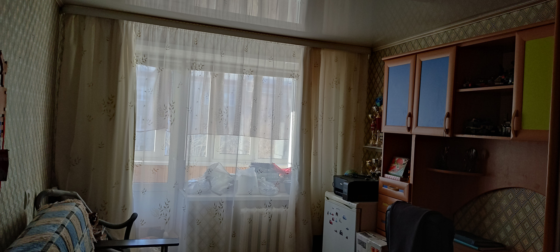 В квартире сделан косметический ремонт, установлены новые  счётчики на воду, газ, электроэнергию, во всех комнатах и кухне натяжной потолок, установлена газовая колонка -горячая  вода есть круглый год, установлена новая надёжная входная дверь. Балкон застеклён пластиковыми  пакетами с внутренней деревянной отделкой. Есть небольшая кладовая - под гардеробную. В доме установлен общий тепло счётчик. В квартире остаётся кухонный гарнитур со столиком, компактная прихожая, шкаф, стол и тумбочки в детской.