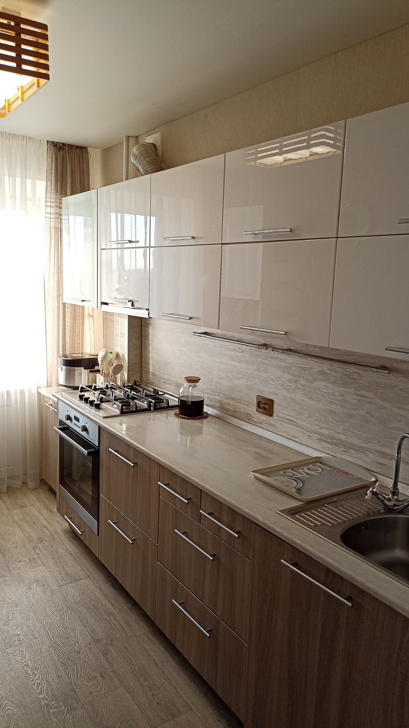 В квартире остаётся практически вся мебель и техника (холодильник, стиральная машина, телевизоры, варочная поверхность, духовой шкаф).