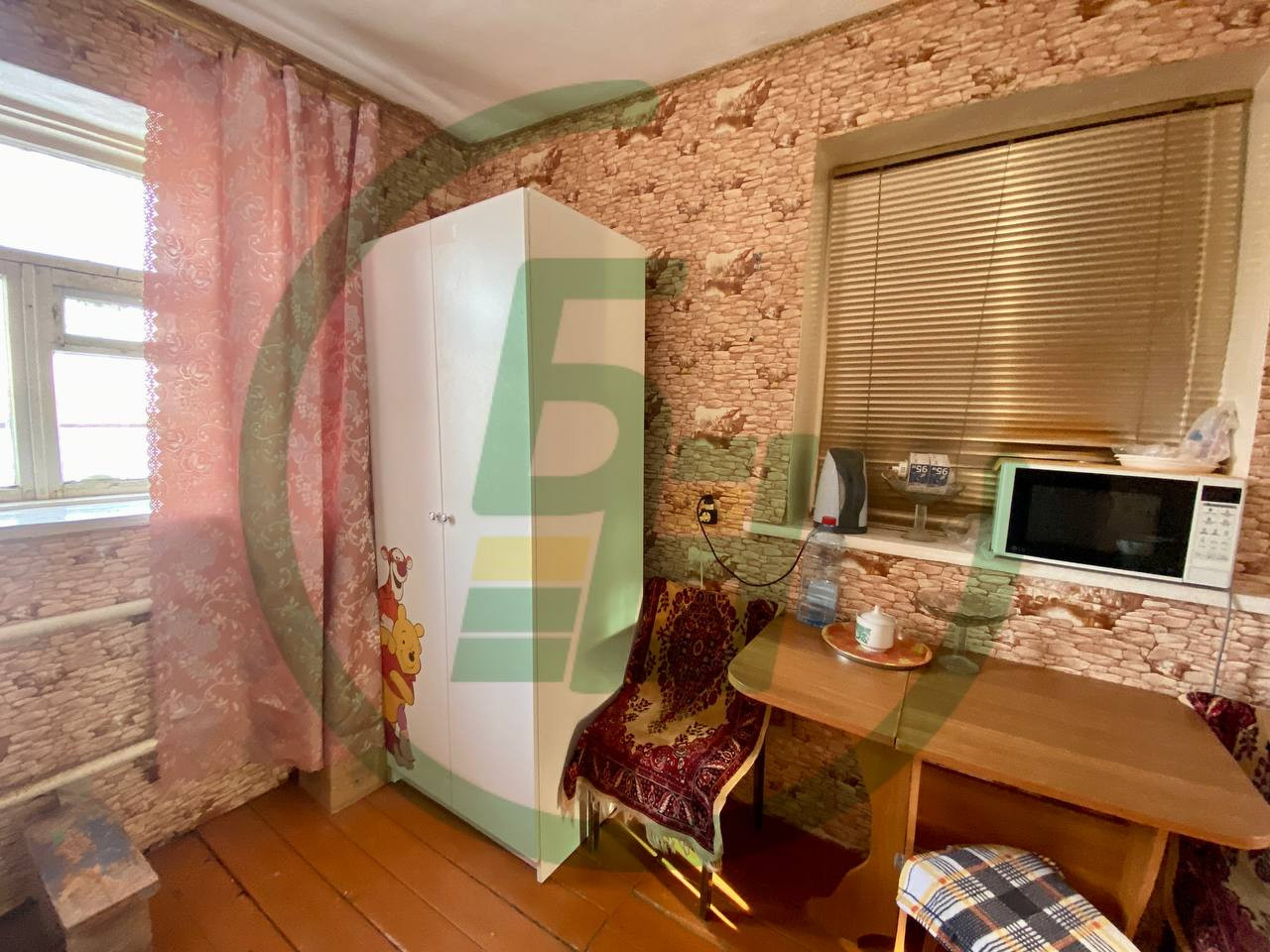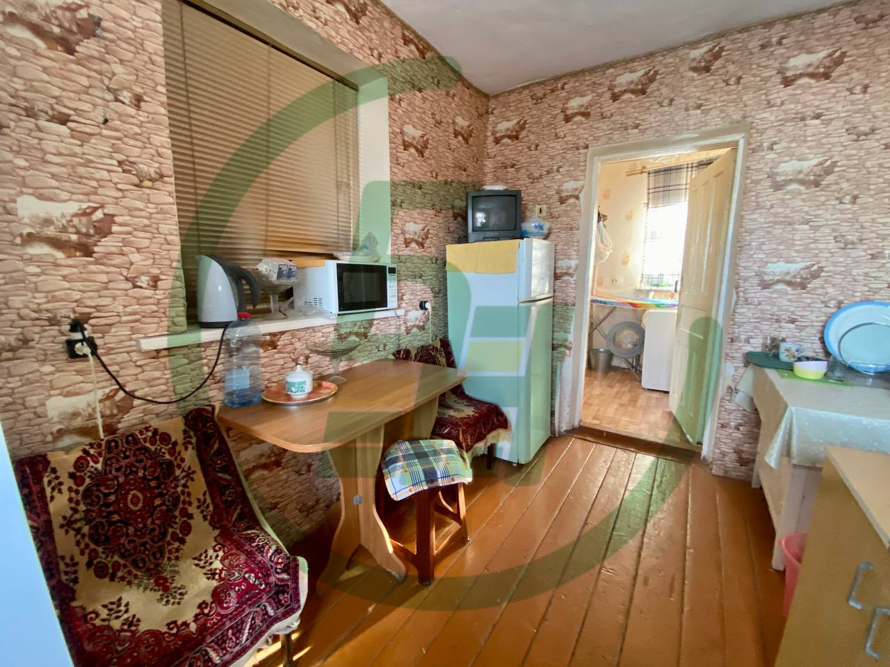 В доме кухня и прихожая, одна жилая комната. Участок ухоженный с многочисленным количеством плодово-ягодных деревьев, цветов и кустарников. На участке газон, есть небольшой огородик, хозяева вложили в него свою доброту и уют. Растёт груша, яблони, смородина, многолетние цветы. Также на участке расположен небольшой гараж и сарай для хранения всего необходимого. Свой любимый автомобиль Вы сможете оставить на территории, для въезда есть удобные ворота из профнастила. Ограждение участка сетка-рабица на забетонированных столбах.