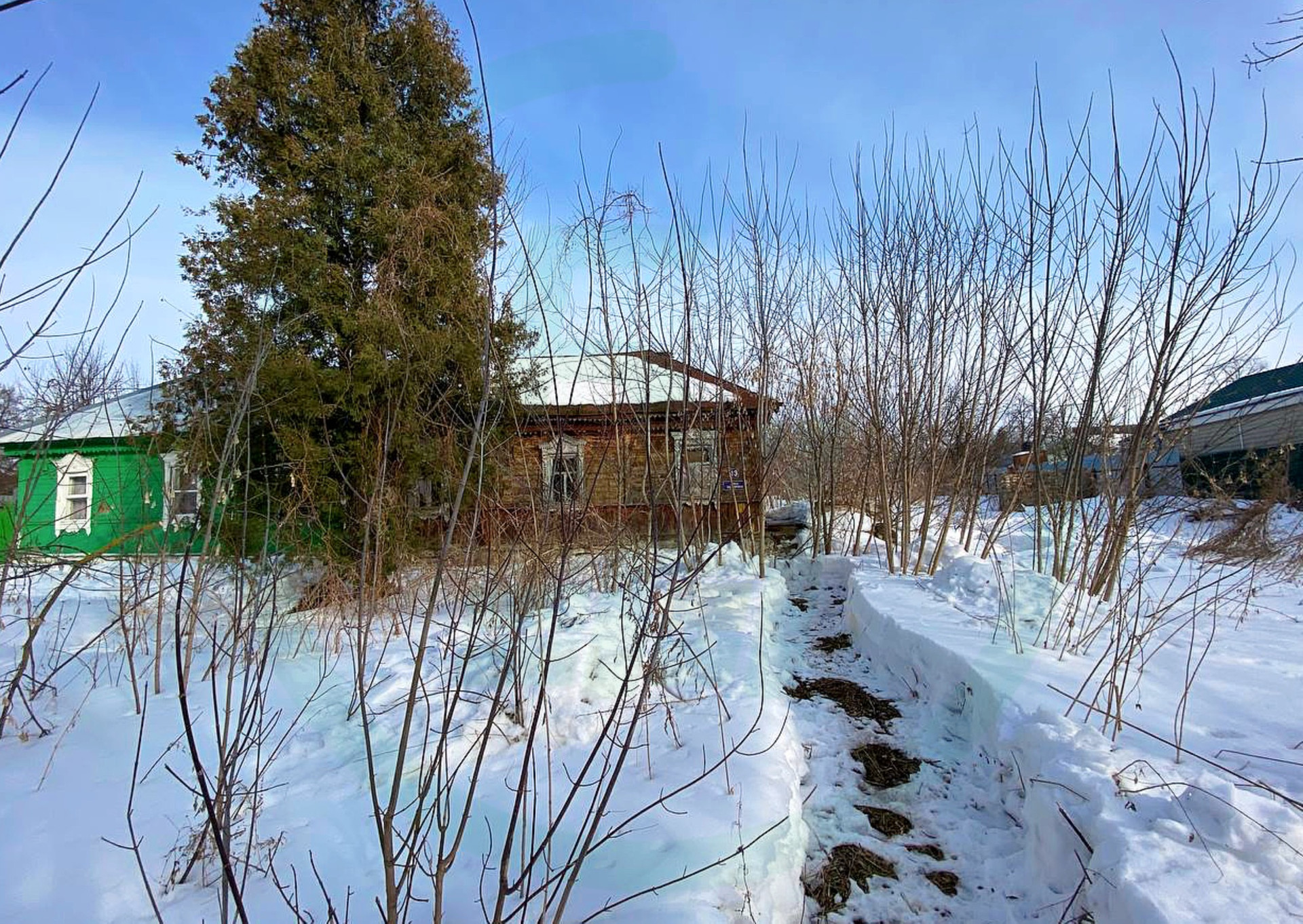 Дом расположен на ровном участке в 7.4 сотки. На земле растут различные деревья и кусты. Всегда можно создать свой огород. Очень тихо и красиво! И все это в черте города!