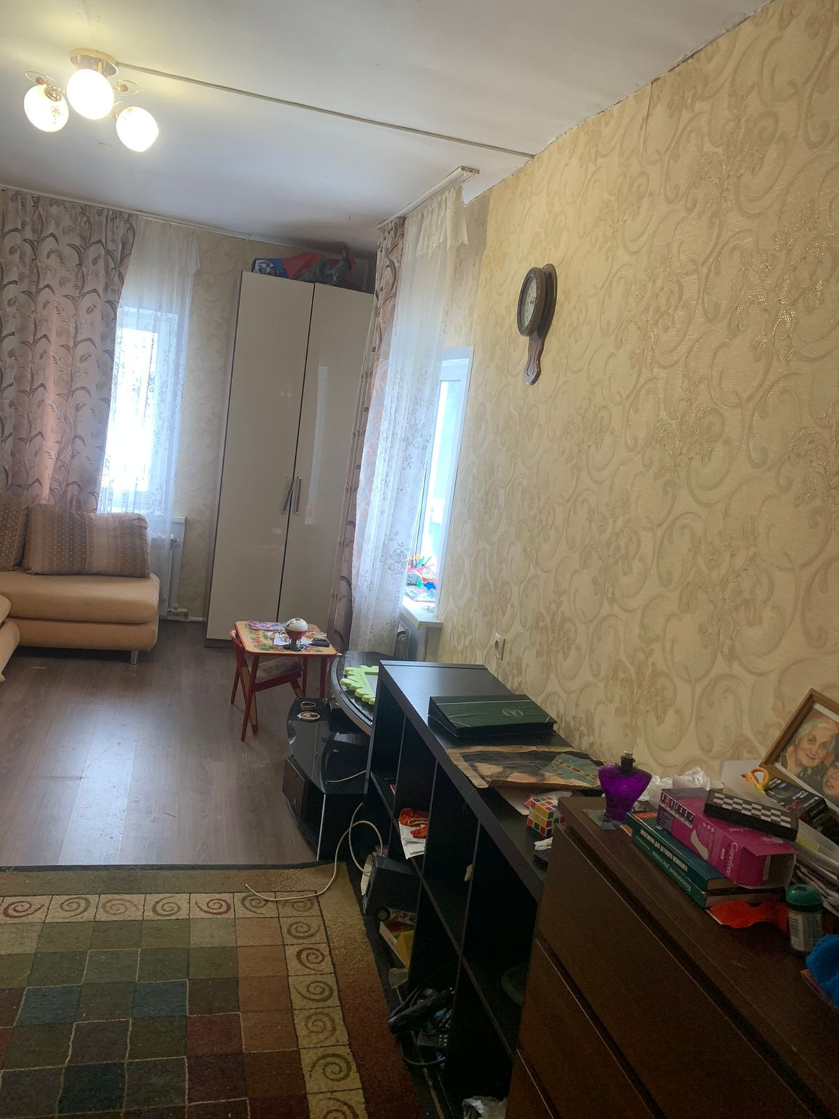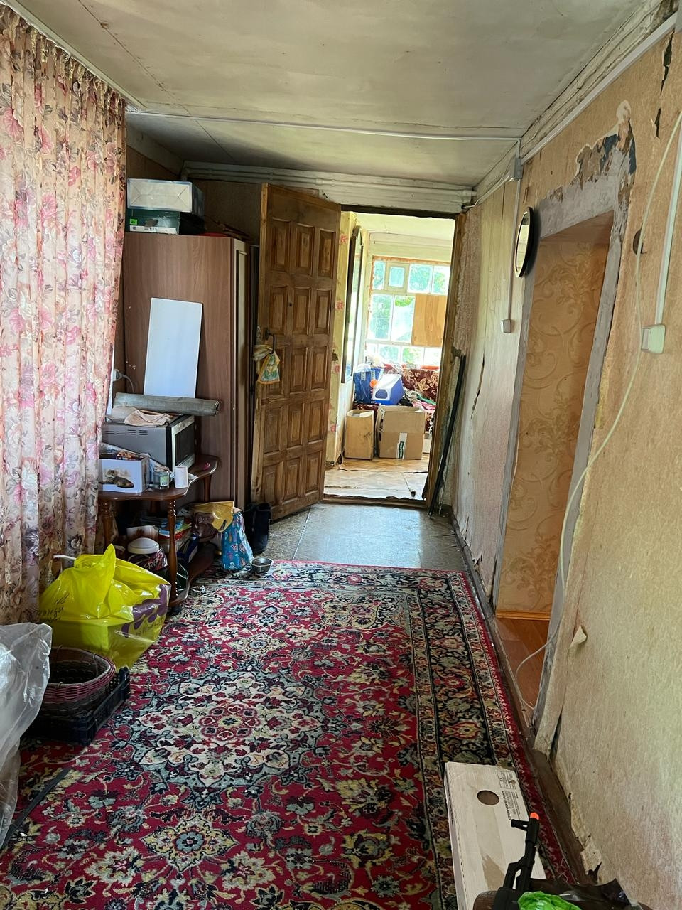 Дом состоит из двух частей: одна часть жилая с ремонтом, вторая на фото видно требует ремонта. Крыша шиферная, не течет. Дом из бревна около 70 лет, фундамент ленточный, газ в доме , электричество в доме 15 кВт. На участке есть кирпичная хоз. постройка. Забор с 2 -х сторон, участок ровный и чистый, справа здание лесничества , слева жилой дом. До автобусной остановки 3 минуты, до набережной Оки 10 минут, до жд станции 5 минут на машине. Вся инфраструктура рядом . Дом крепкий , правая часть требует ремонта ( сноса веранды , внутренняя отделка) в левой части все есть: кухня, комната с ремонтом . Вода центральная холодная , горячая - бойлер. Канализации нет. Туалет на улице.Торг обсуждается.
