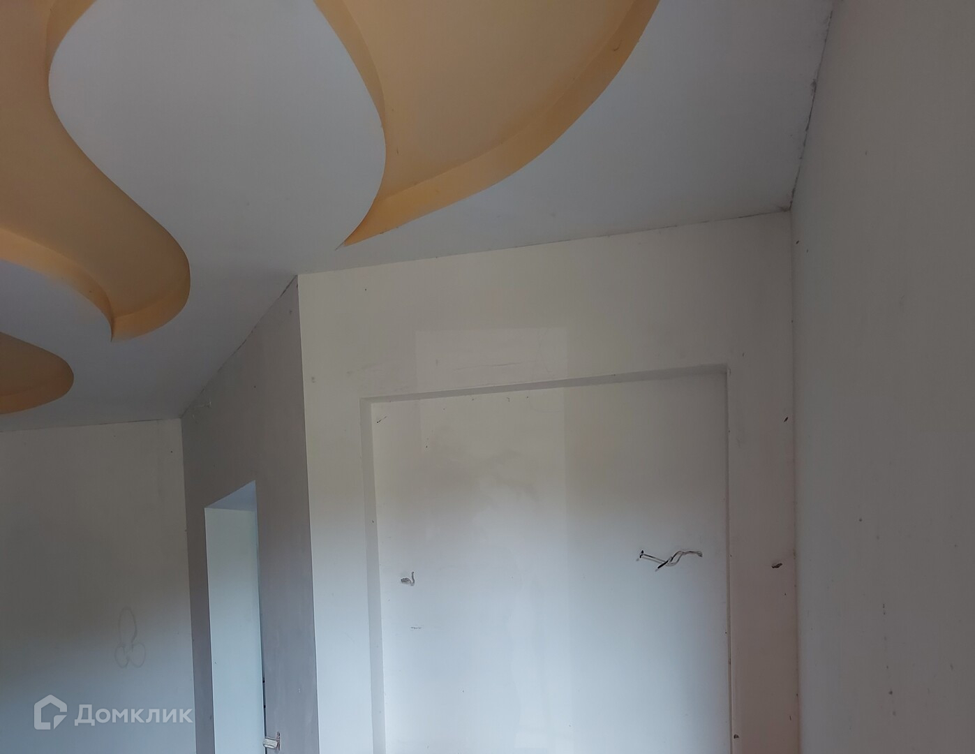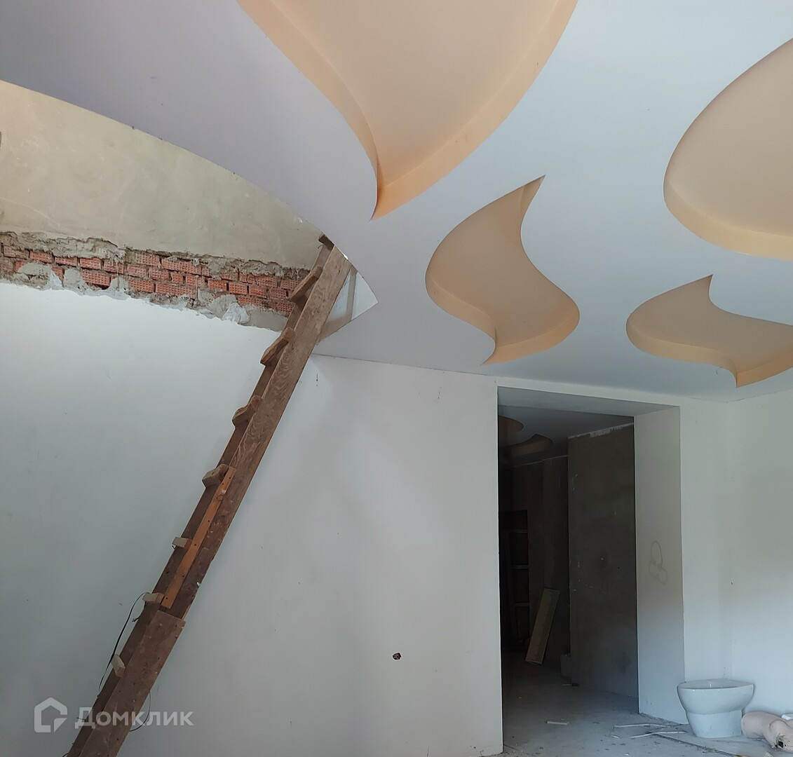 Внутренняя отделка дома в основном выполнена в черновом варианте, комнаты оштукатурен, кухня и холл на первом этаже готовы к чистовой отделке под покраску или обои, потолки выполнены из гипсокартона в многоуровневом стиле.
