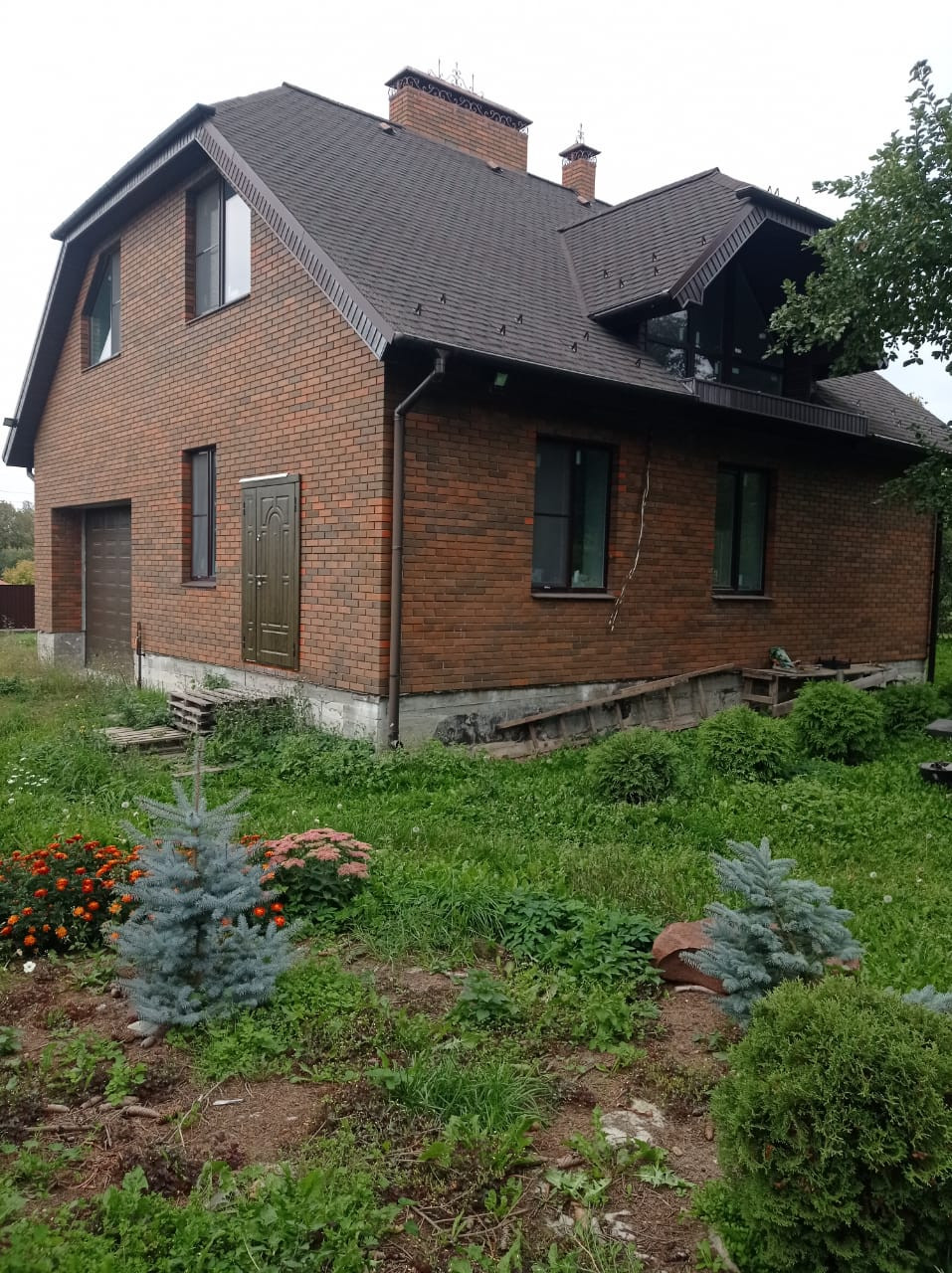 Дом готов под чистовую отделку. На втором этаже душевая, две спальни, детская, большой холл. На первом этаже просторная кухня, столовая с панорамными окнами. В доме есть подвал 20 кв. м. с отделкой. Отапливаемый гараж с автоматическими воротами.