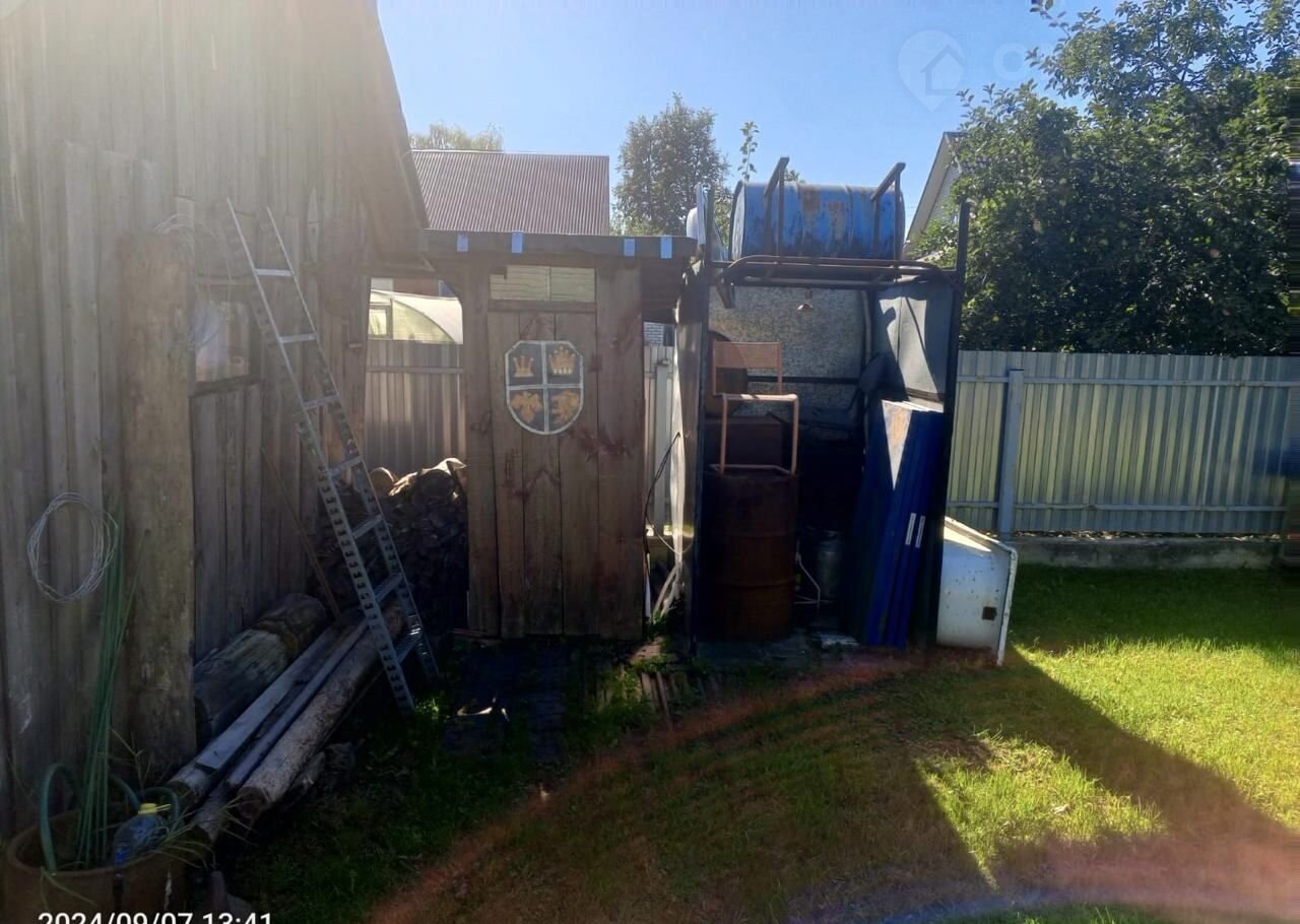 На участке есть гараж с воротами в переулок , бревенчатая баня. Крыши и стены бани и гаража в отличном состоянии, требуется устройство полов. Ухоженная территория. Выложена дорожка от дома к бани и дальше к гаражу .