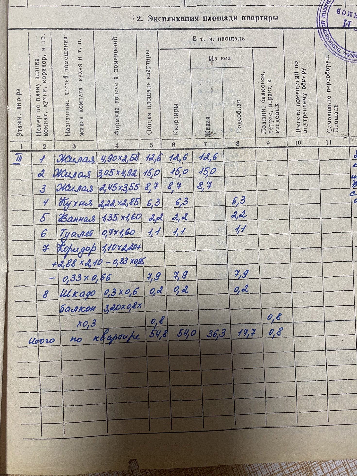 Общая площадь 54.8 м2
