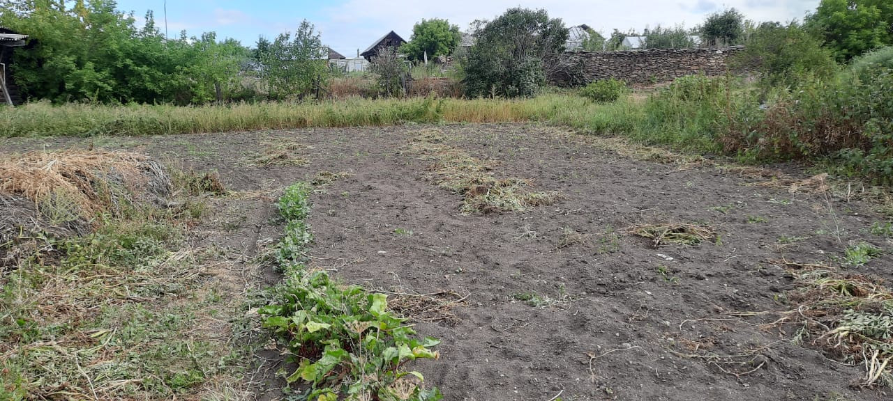 Земельный участок с посадками и плодовыми деревьями, есть теплица, подсобные помещения (сарайки).