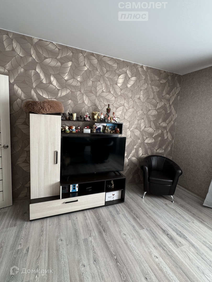 стены оклеены обоями, на полу ламинат,