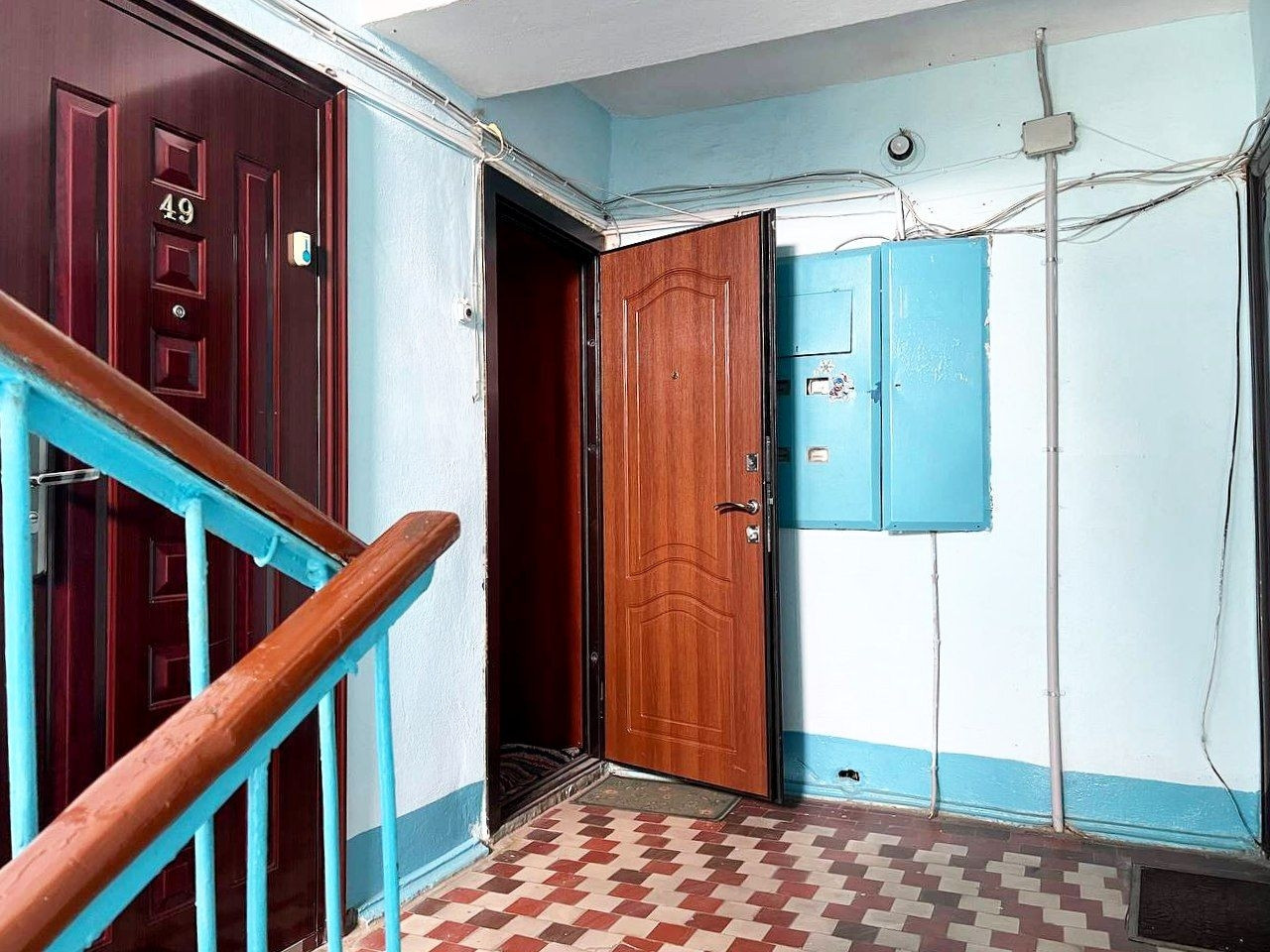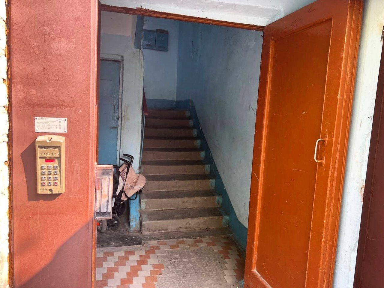 Хорошая входная дверь, домофон, чистый подъезд.