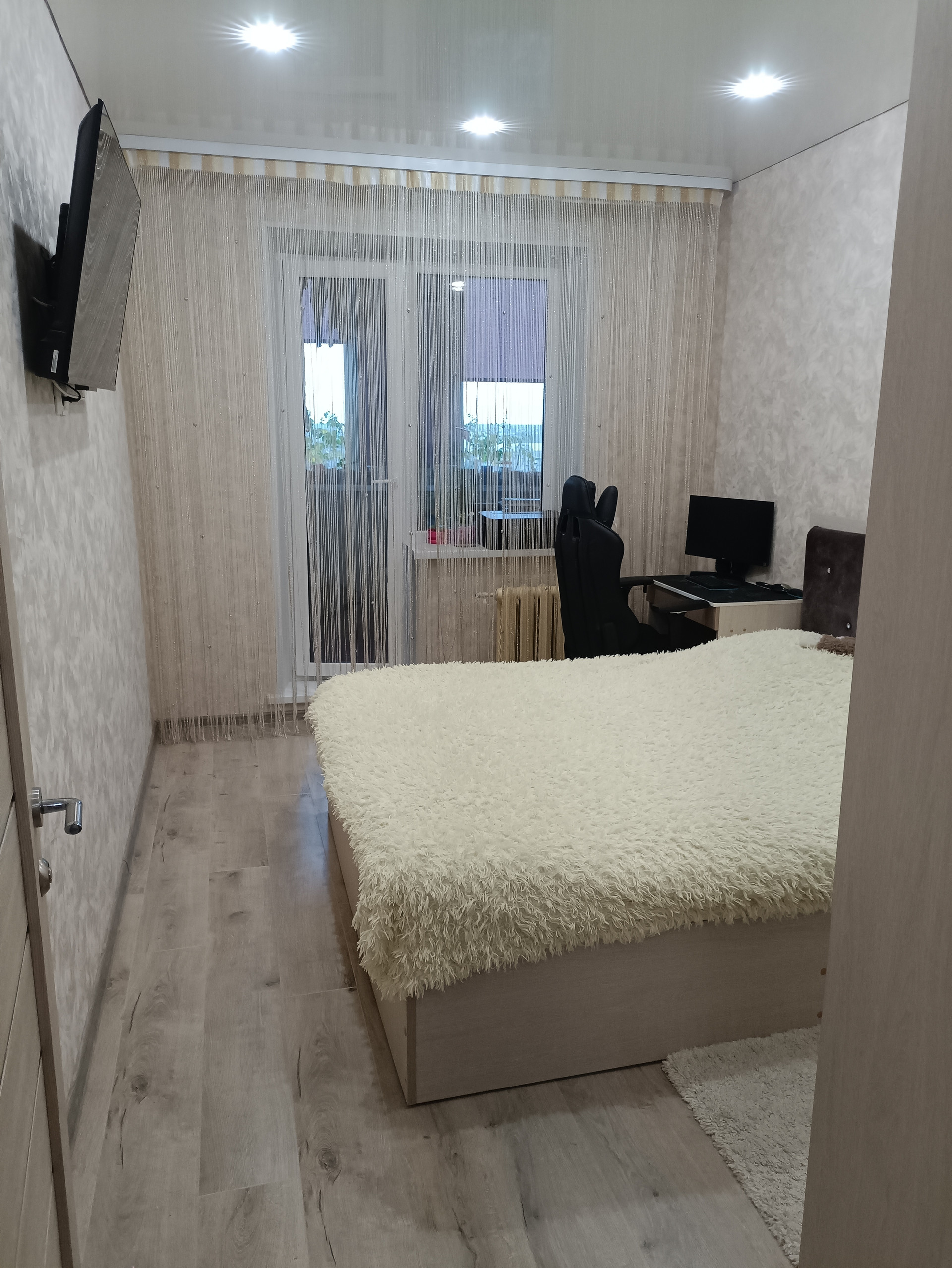 Продается уютная  и теплая 3-х комнатная квартира. Натяжные потолки,пластиковые окна,новые двери установлены во всех комнатах. Проводка полностью заменена,все кабеля спрятаны в стене. Уложен ламинат во всей квартире без стыков и порогов. Балкон утеплен, может использоваться как отдельная комната. В ванной комнате установлен водонагреватель,унитаз с инсталляцией,трубы также заменены на новые полипропиленовые. В квартире остаётся кухонный гарнитур и 3 метровый шкаф купе. Домофон, Wi-Fi. Реальному покупателю останется очень приятный и необходимый бонус!