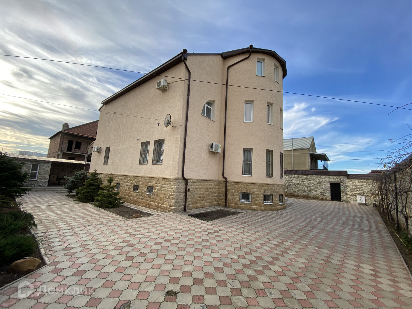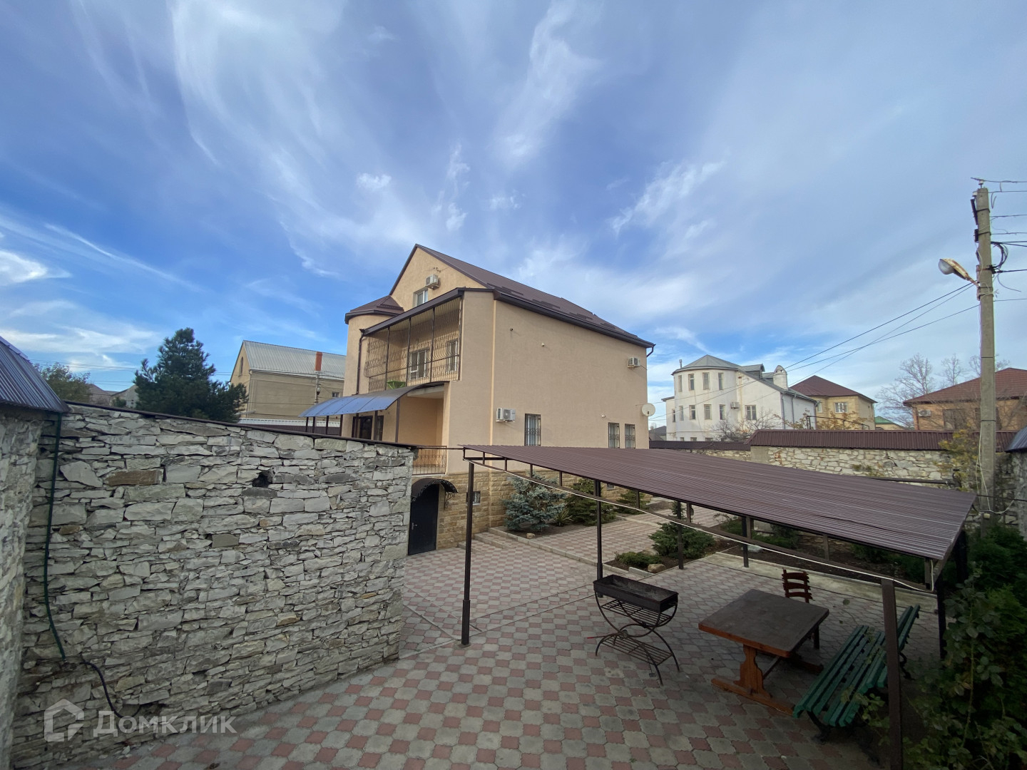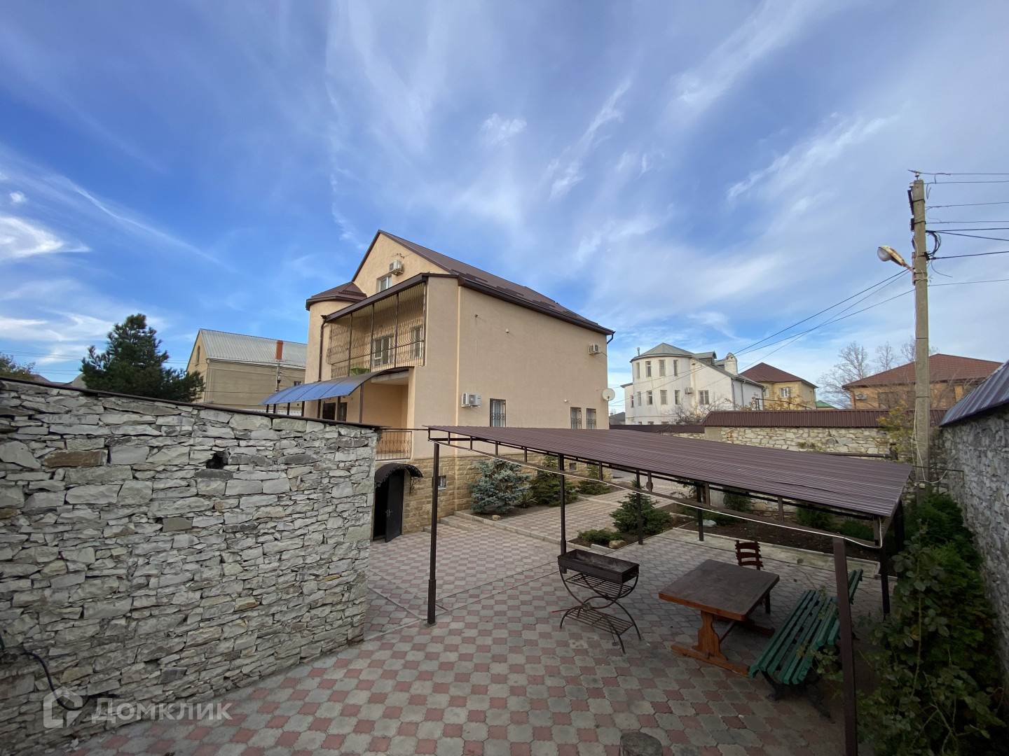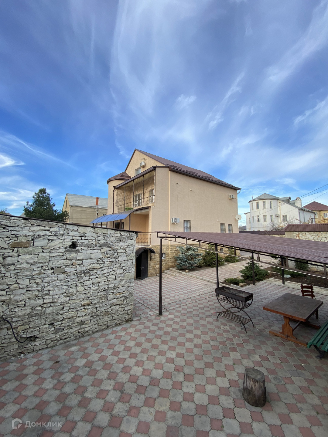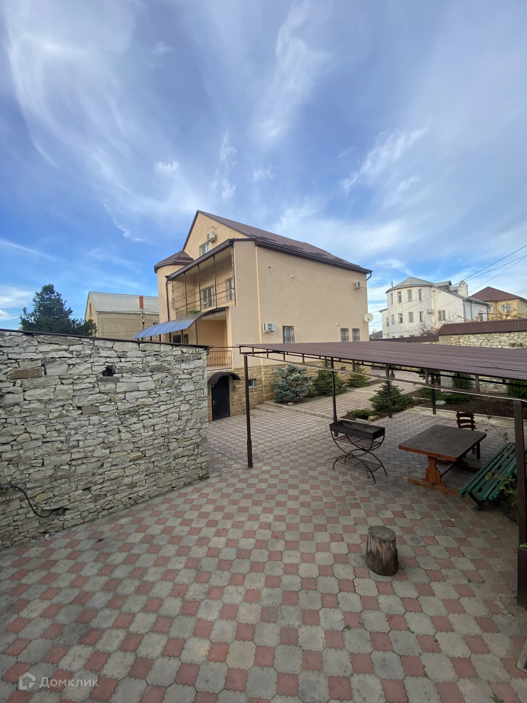 — большой двор в плитке, и сад