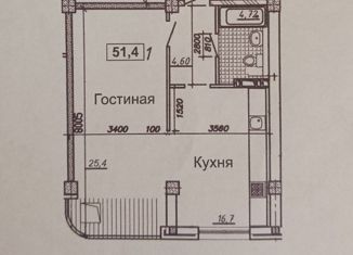 Общая площадь: 51.4 м2