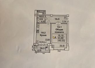 Продажа однокомнатной квартиры, 45.9 м2, улица Амет-хан Султана