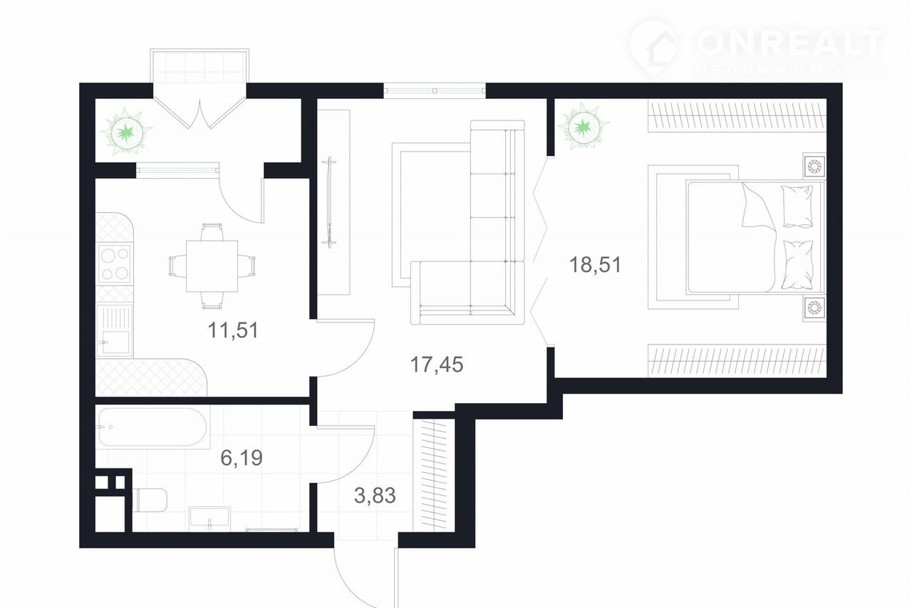 Балкон, лоджия 1 лоджия