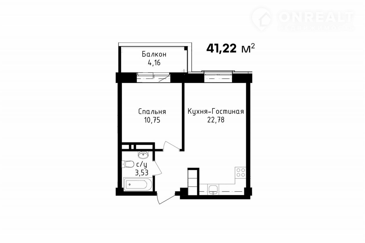 Общая площадь 41.2 м2