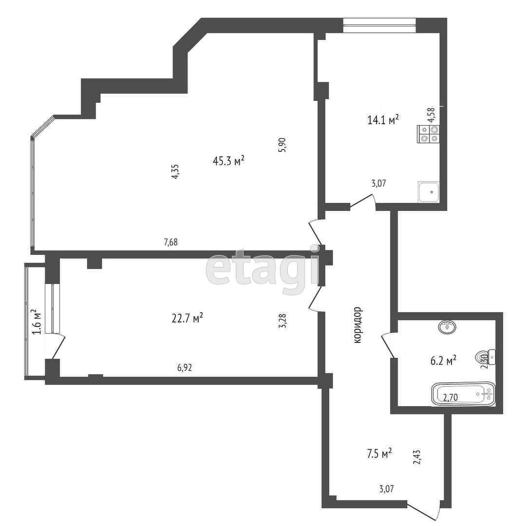 Площадь кухни 16 м2