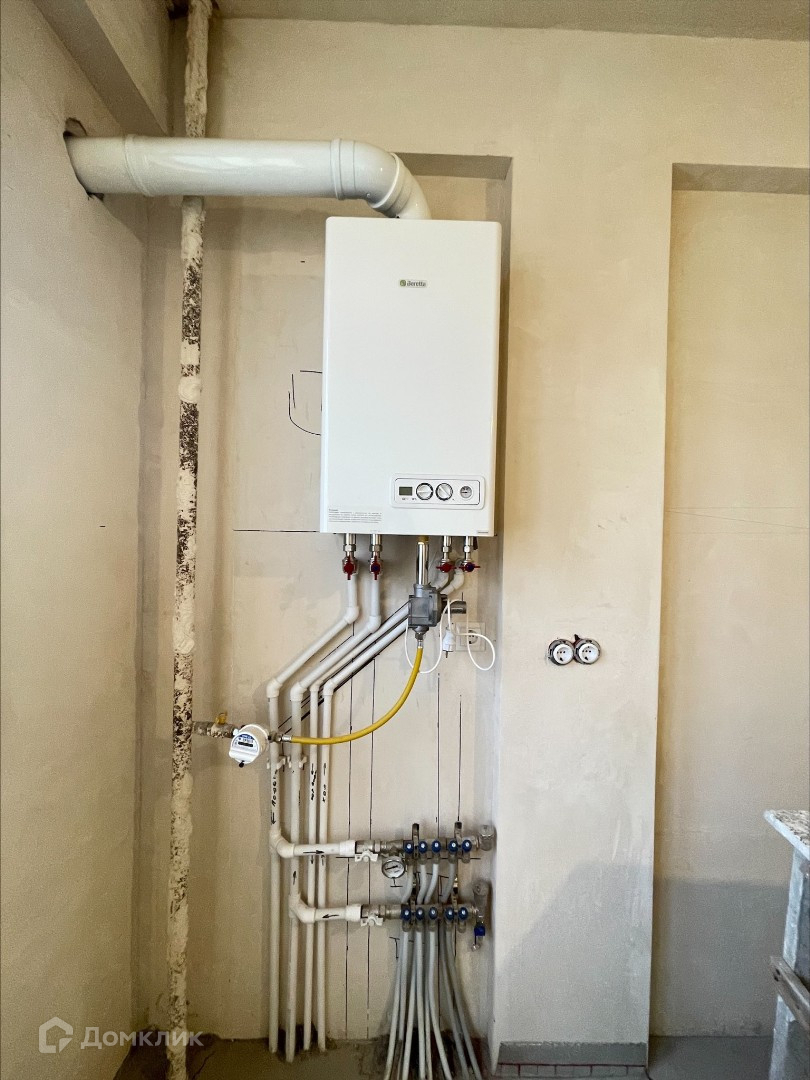 Проведена электрика, установлены розетки, батареи, сделан теплый пол, установлен котел итальянской фирмы Beretta. Стены готовы под поклейку обоев и выровнен пол под ламинат. Поставлены счетчики на воду, газ. В санузле установлен комплект инсталляции.