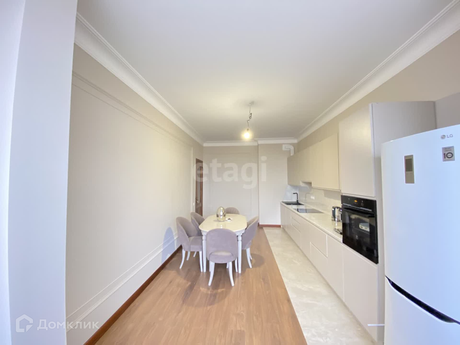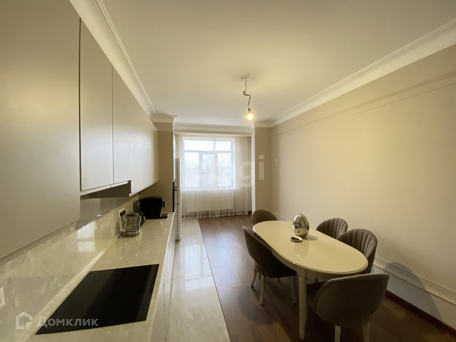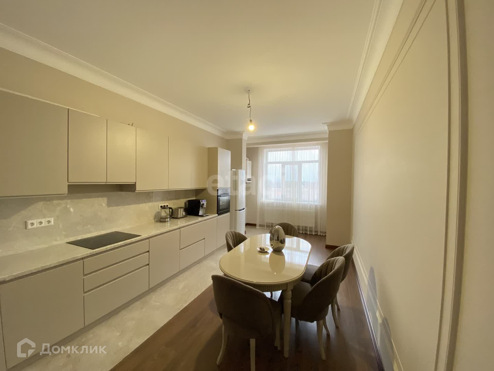 Сделан свежий современный ремонт. Площадь квартиры составляет 111 м2, площадь кухни 24м2.