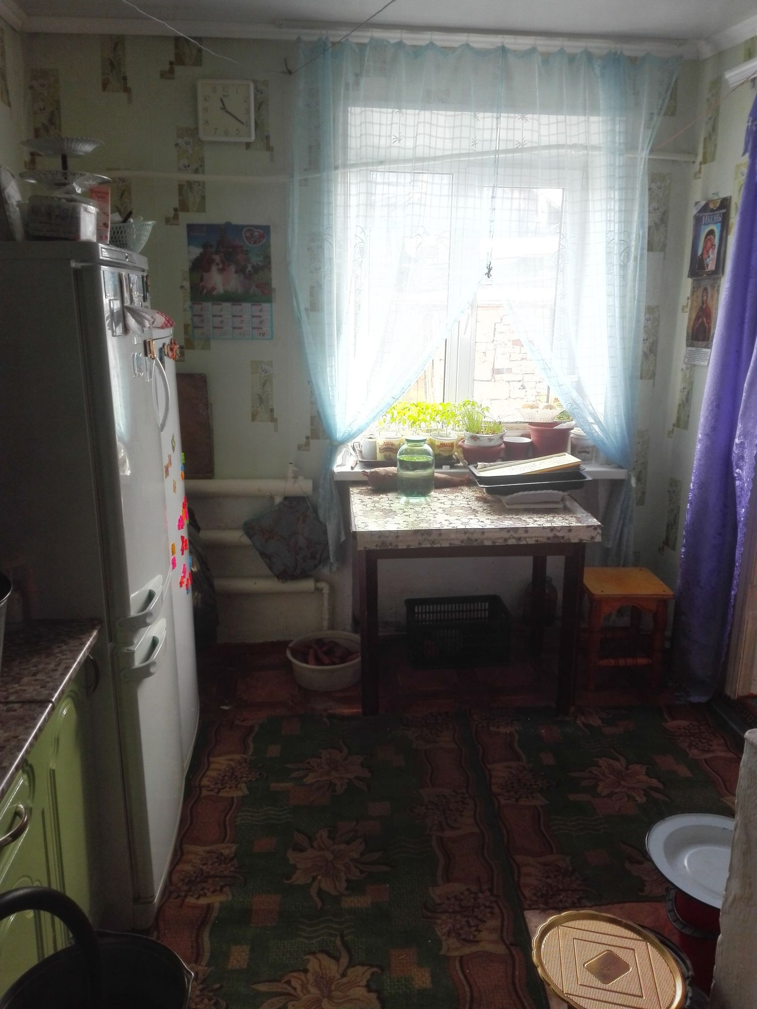 Продам 1/2 кирпичного дома,газ подведен к дому,отопление печное и электрическое,стайка и гараж кирпичные,теплица поликорбонат,баня из бревна.