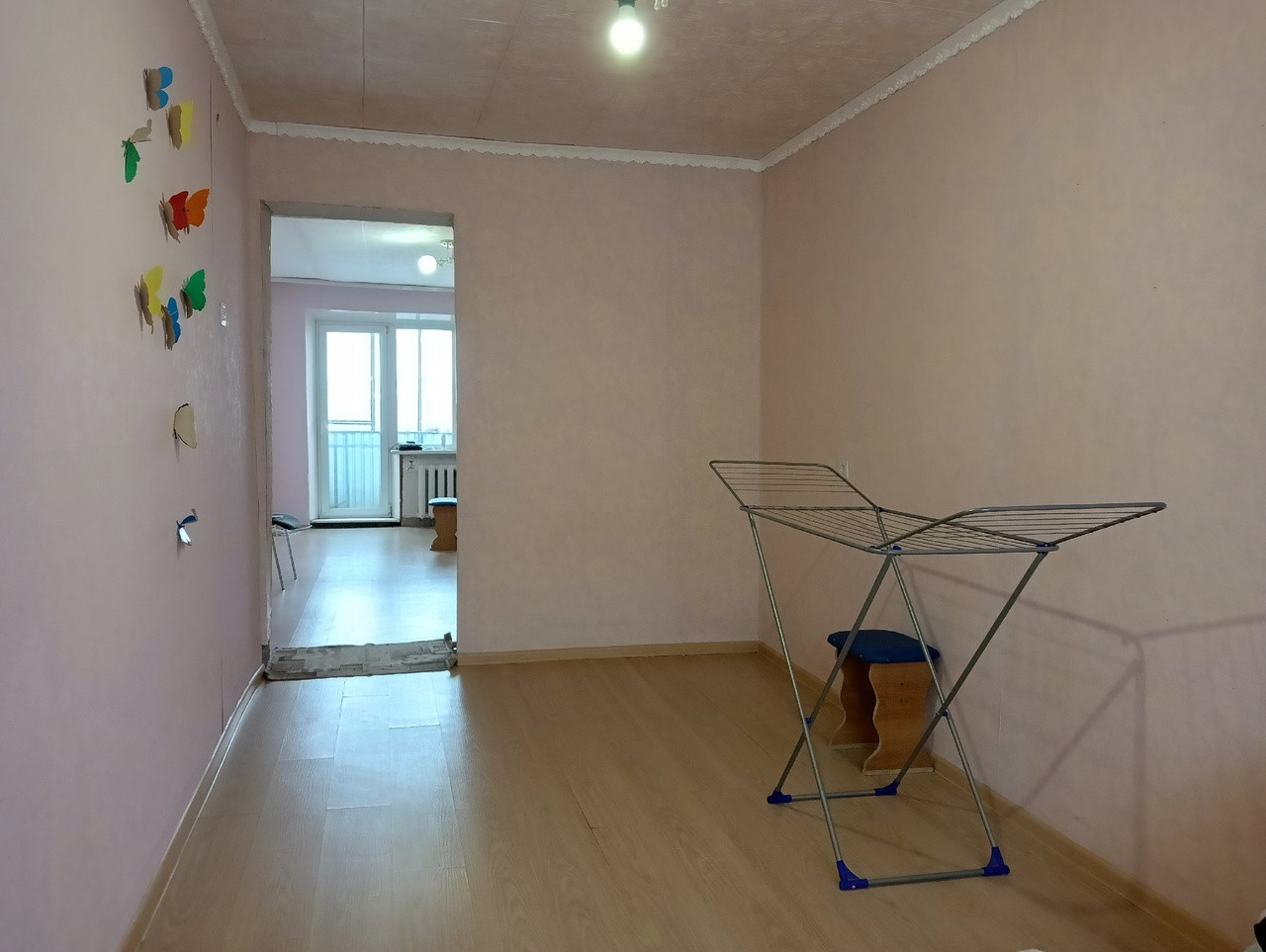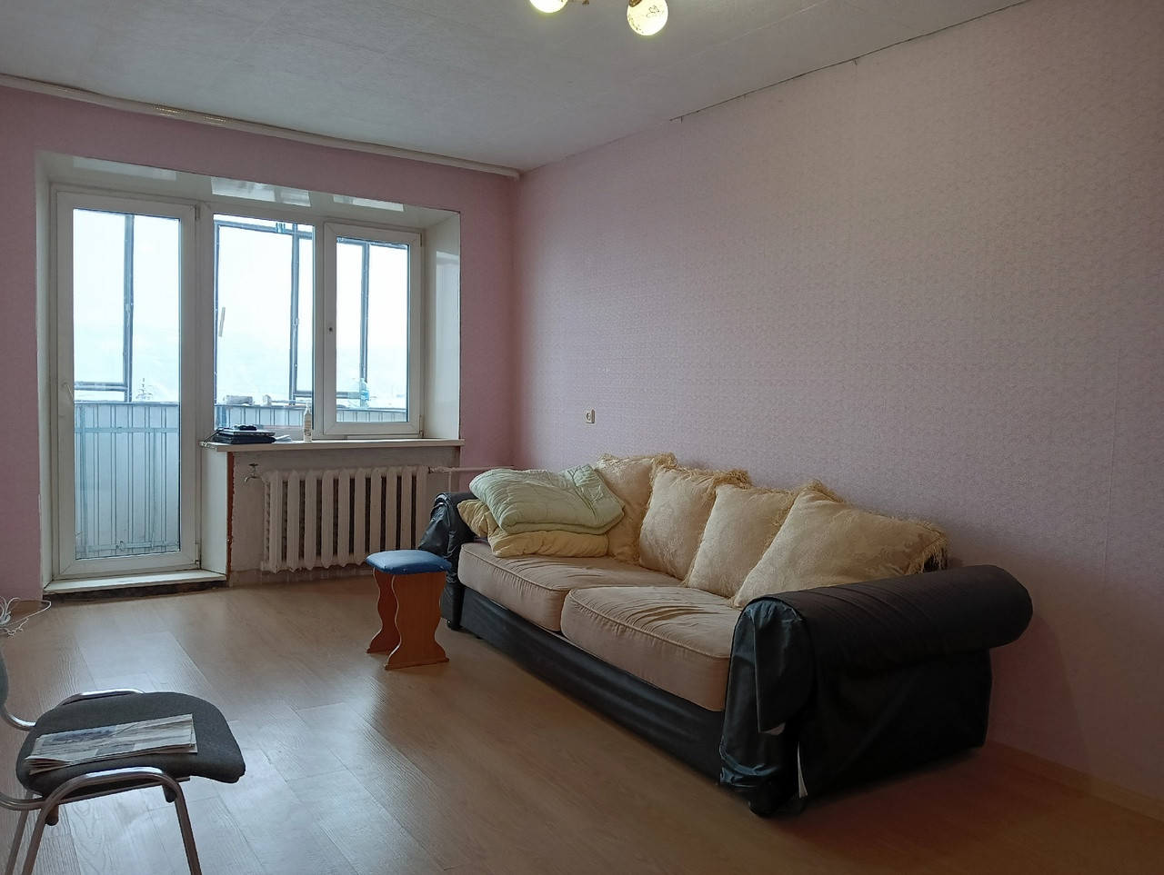 - Стены оклеены обоями;