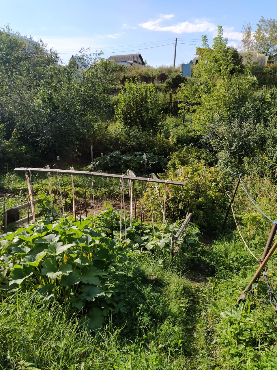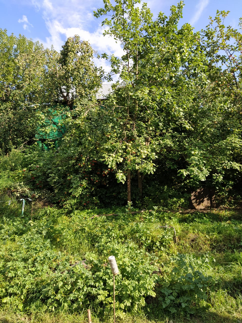 Огорожен со всех сторон забором, ухоженный, с насаждениями (вишня, яблони, слива, смородина, крыжовник).