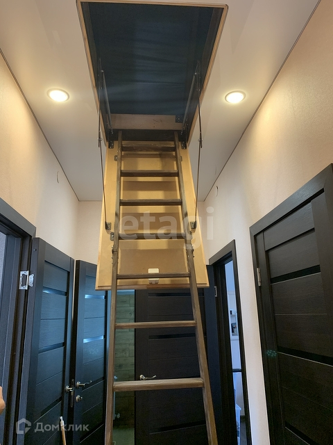 Так же имеется выдвижная лестница на мансардный этаж. В доме остается встроенная мебель и кухонный гарнитур.