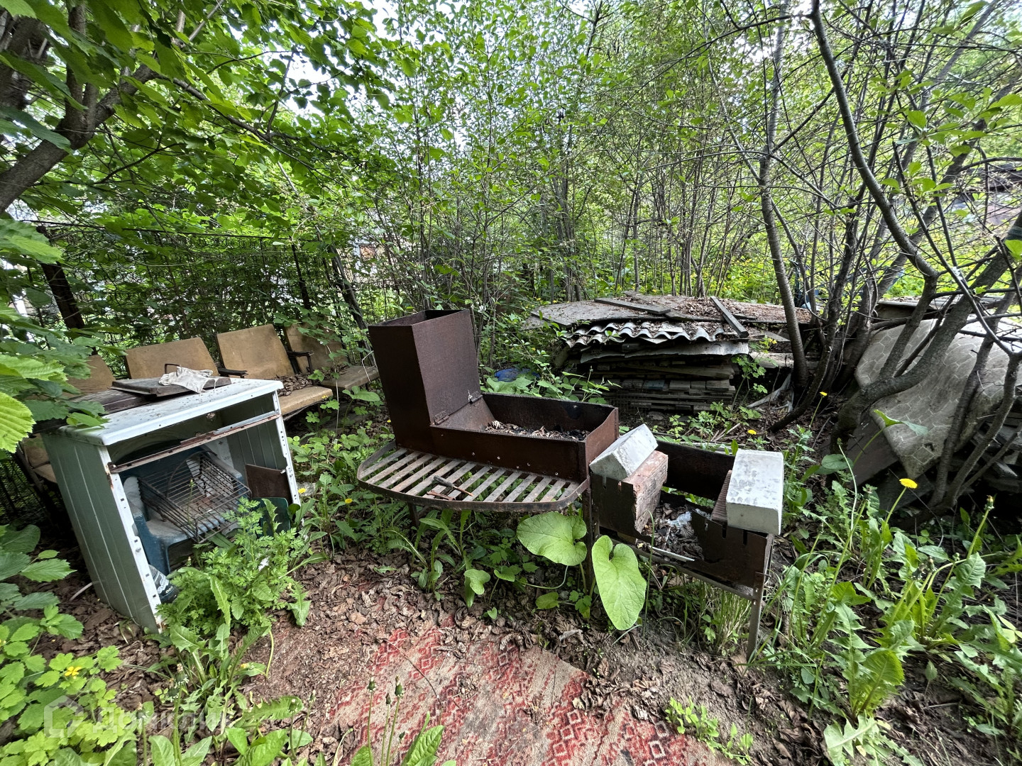 Насаждения: 5 летних и 2 осенние яблони, много вишни, смородины, груша, слива и многое другое. Часть земли в этом году не засажено в связи с продажей.
