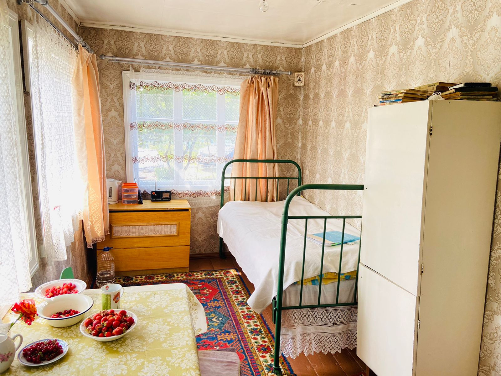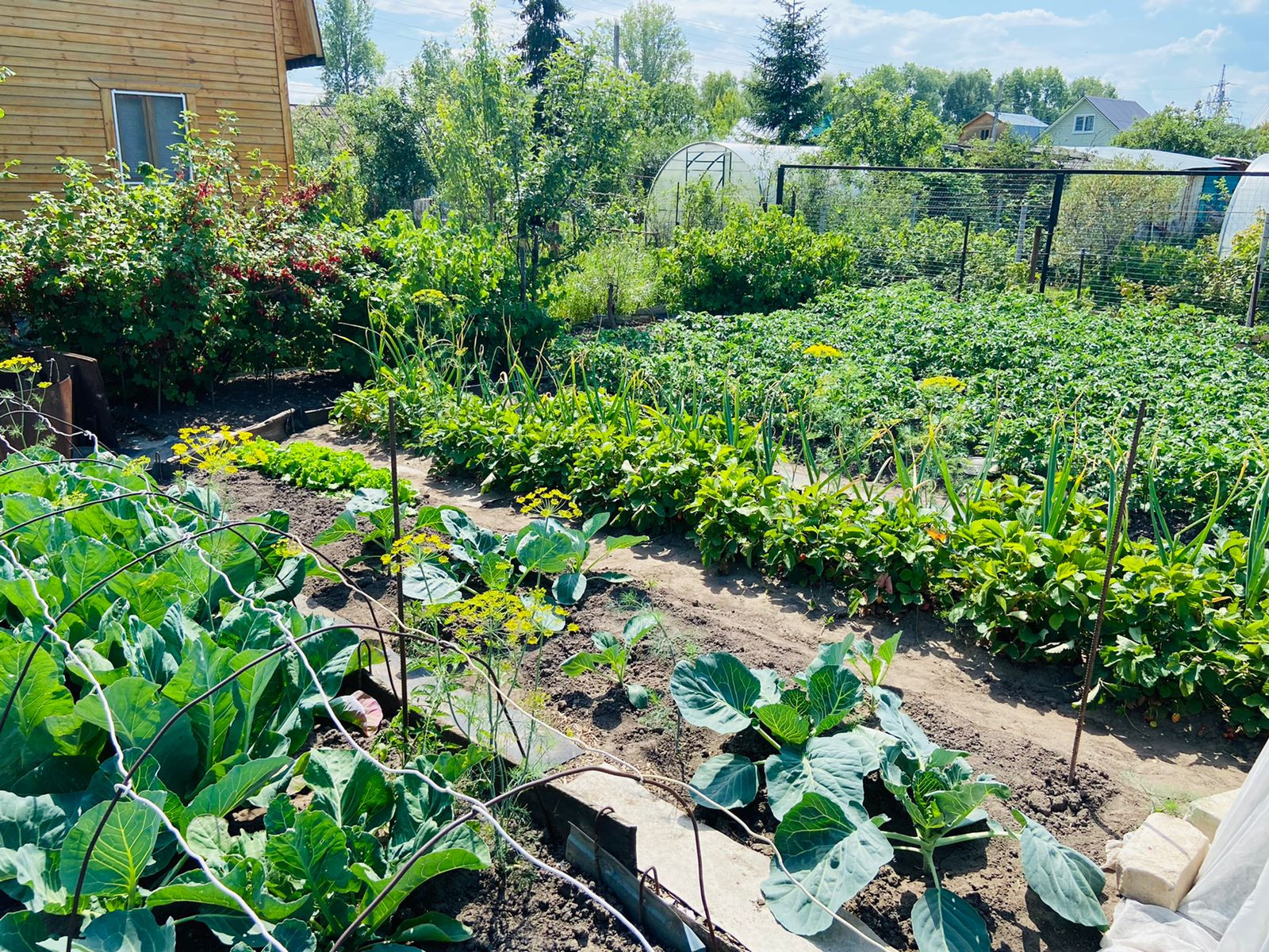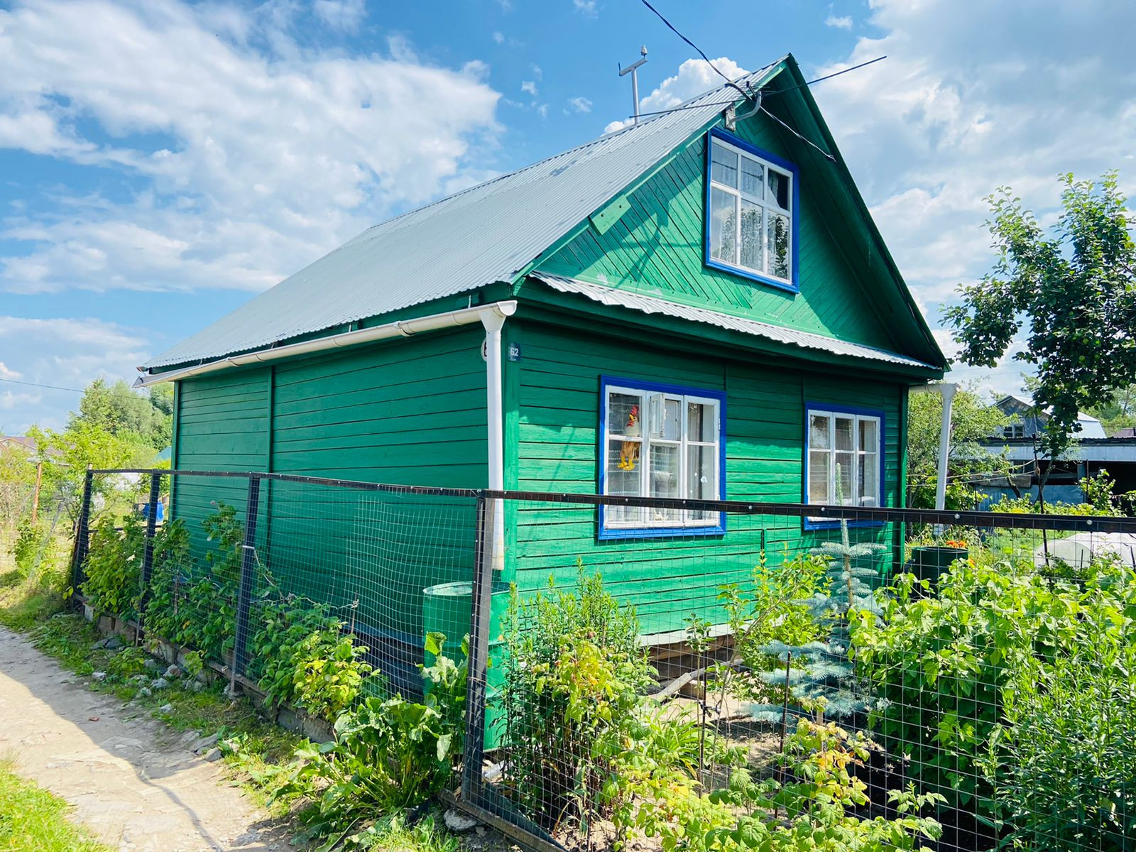 Ухоженный участок с плодово-ягодными насаждениями: яблони, синяя и желтая сливы, боярышник, кусты красной и черной смородины, крыжовник, вишни, малины, клубника, жимолость, овощи, голубая ель, сирень, жасмин , орех лесной.